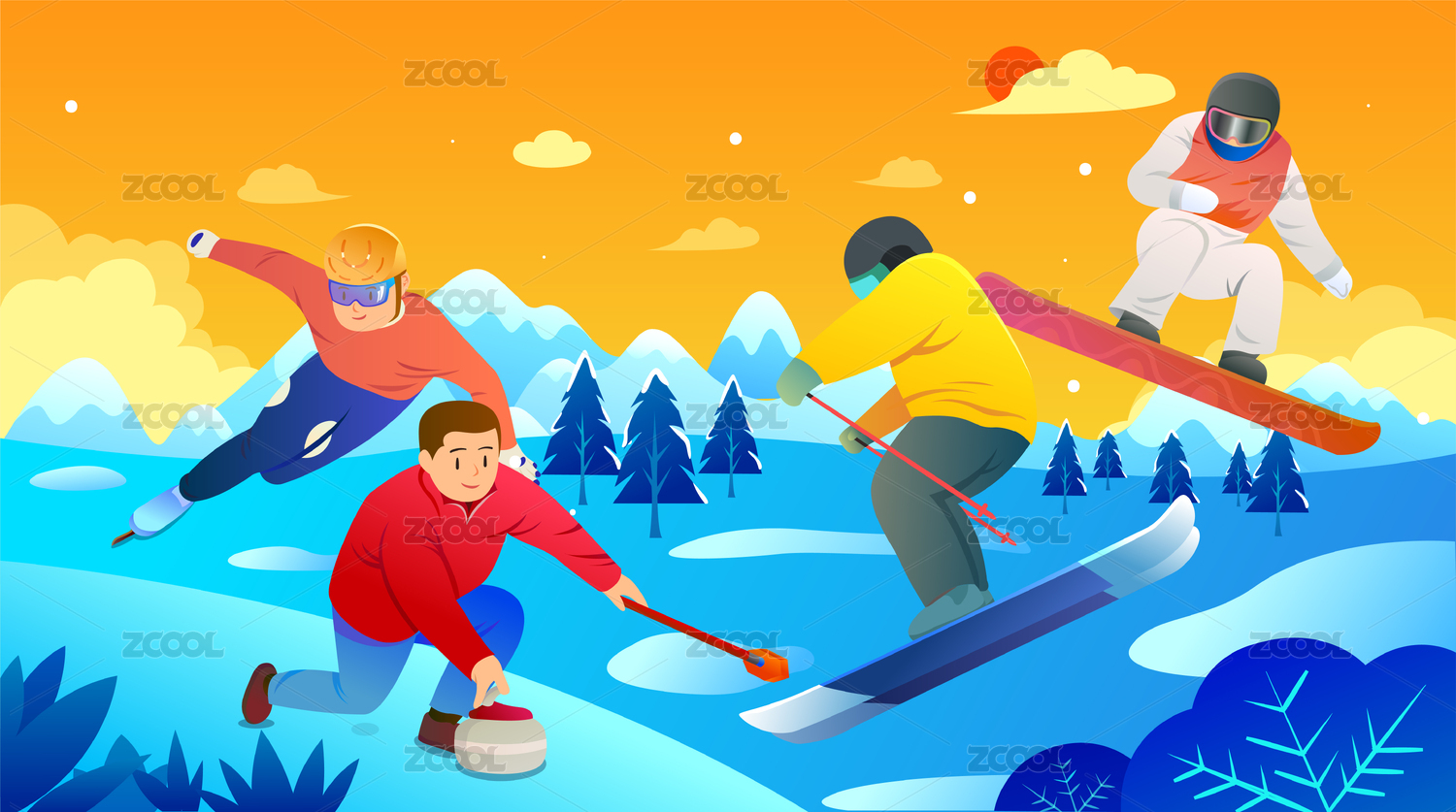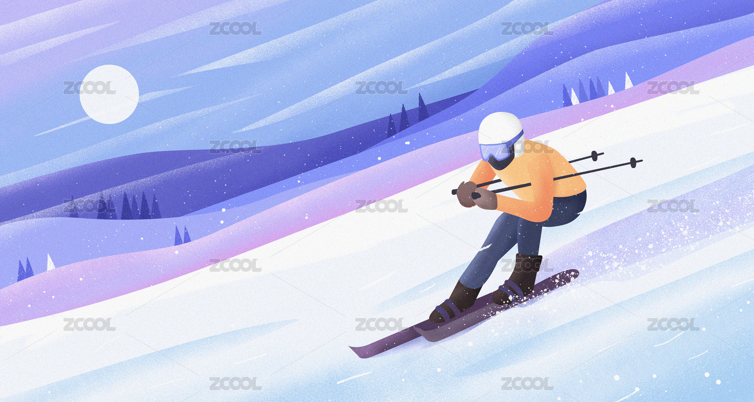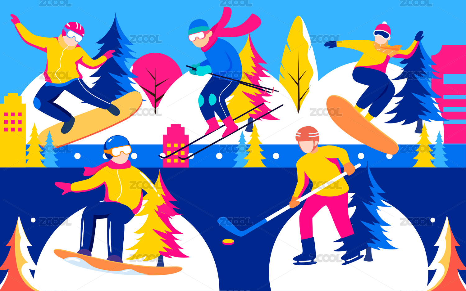 北京冬奥会滑雪人物插画冬季运动健身海报