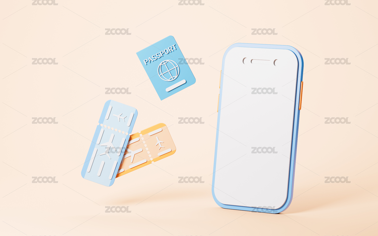卡通飞机与手机模型网上订票场景3D渲染