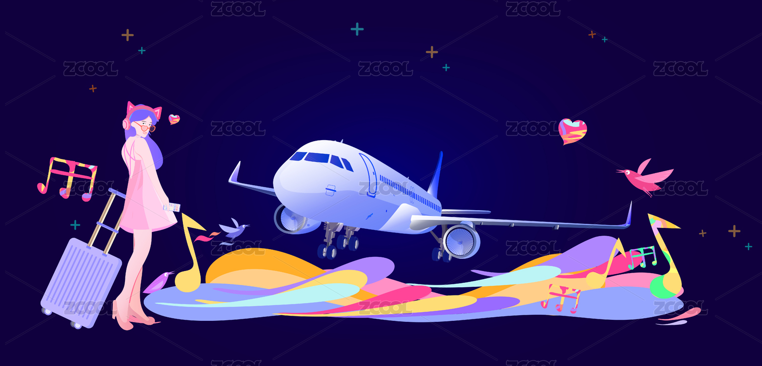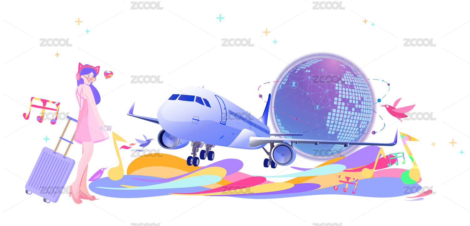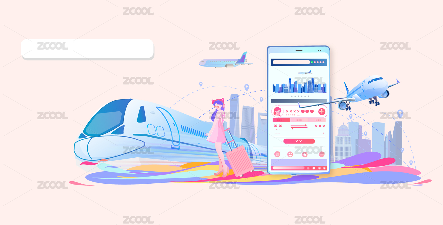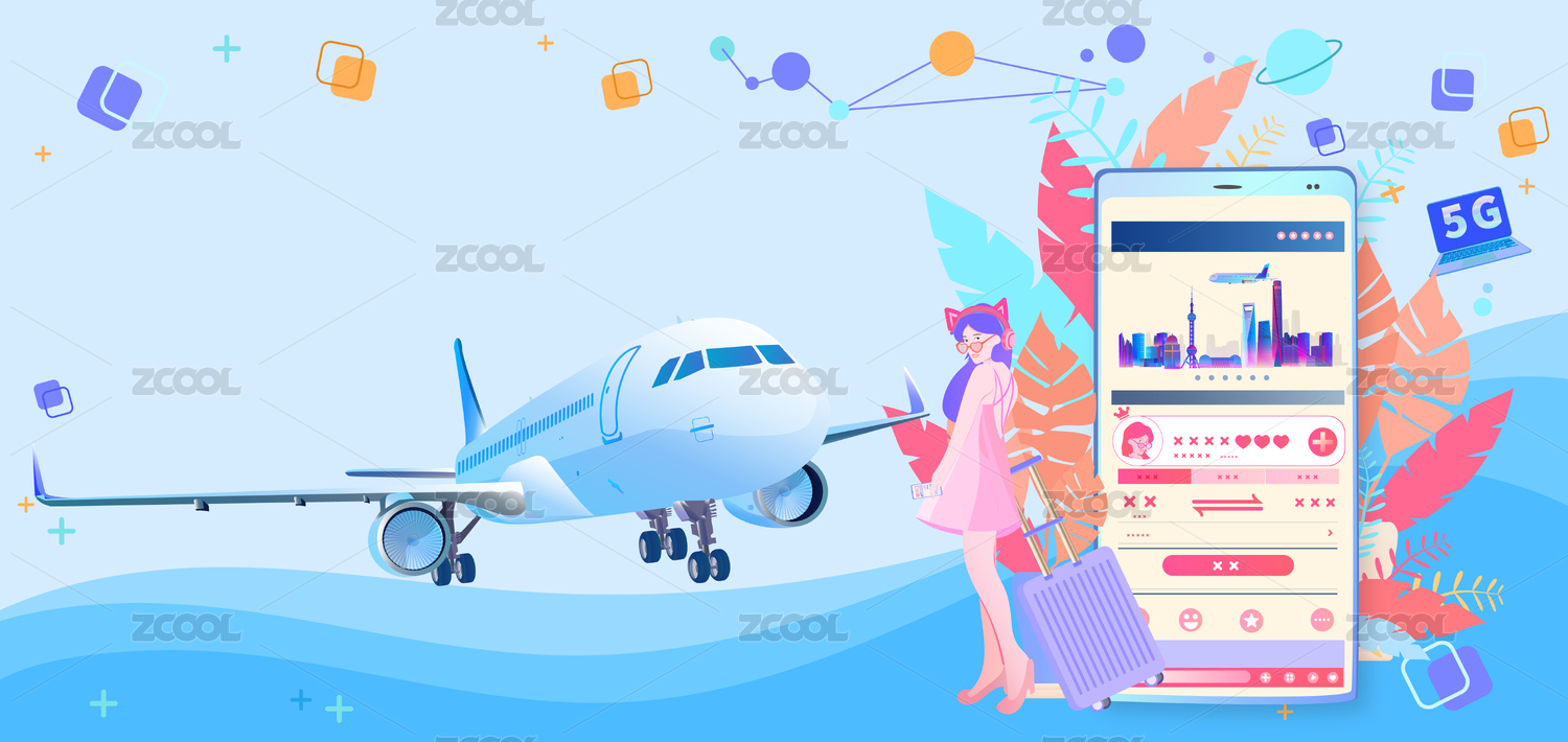 美女用手机网上订机票去旅游插画