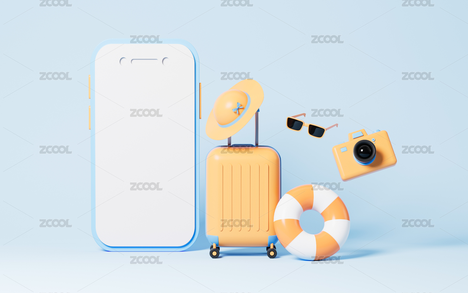 网络订票和行李箱3D渲染
