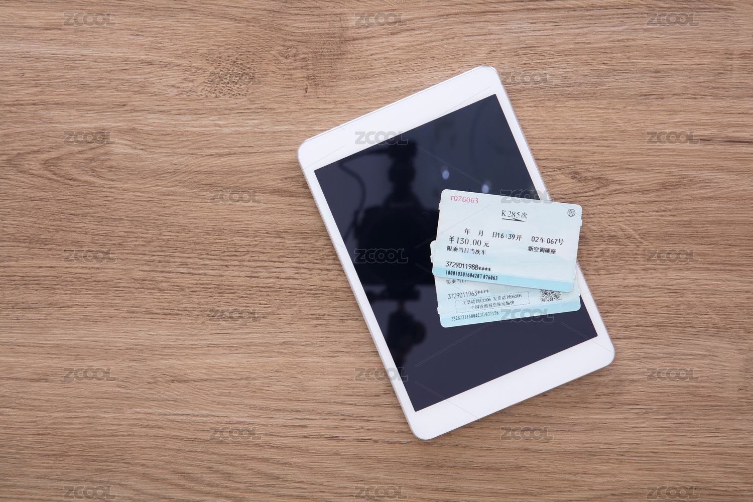 ipad平板电脑和两张回家的火车票
