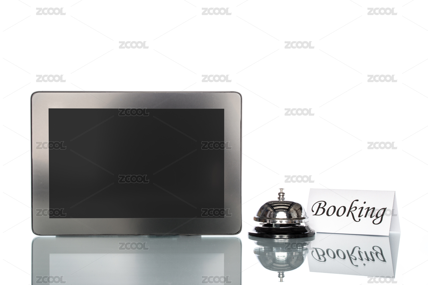 在白色背景,订票笔记本电脑和服务铃