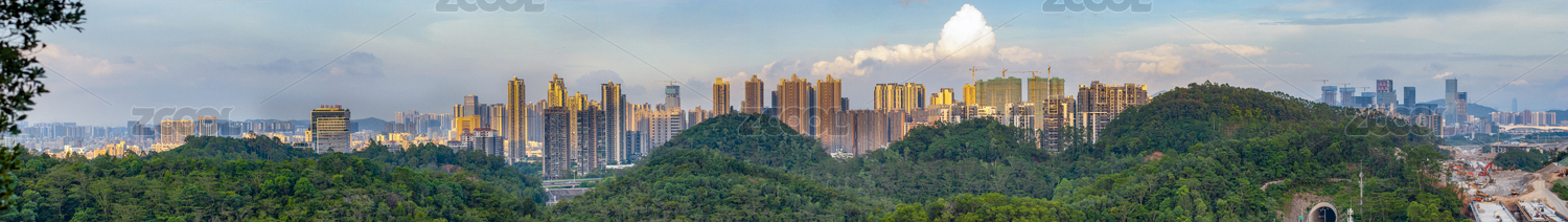中国广东深圳羊台山俯瞰山河自然全景风光