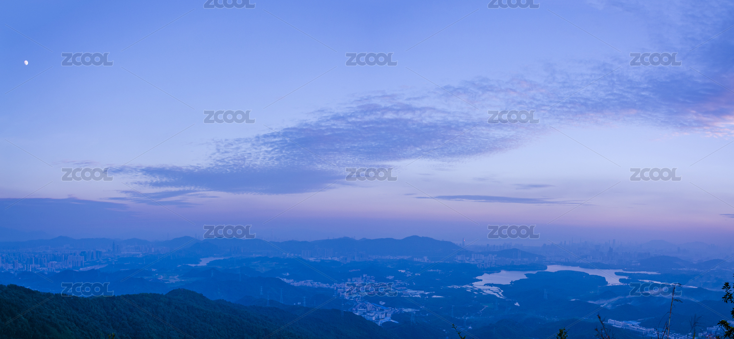 中国深圳市龙华区羊台山的日落城市风光全景