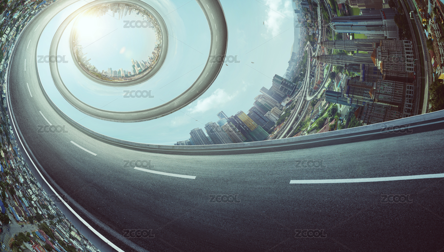 抽象转动扭曲的高速公路与城市