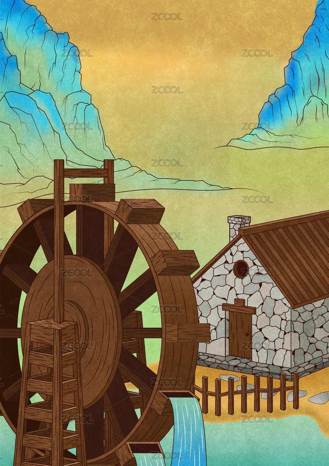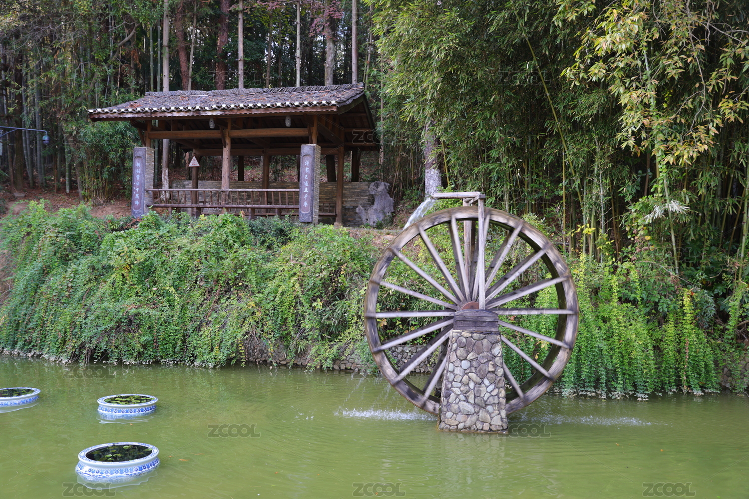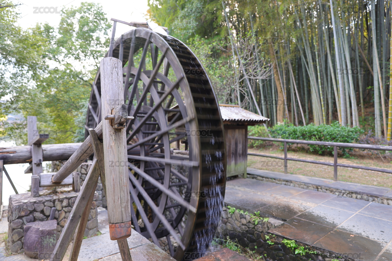 古朴水车悠然转动