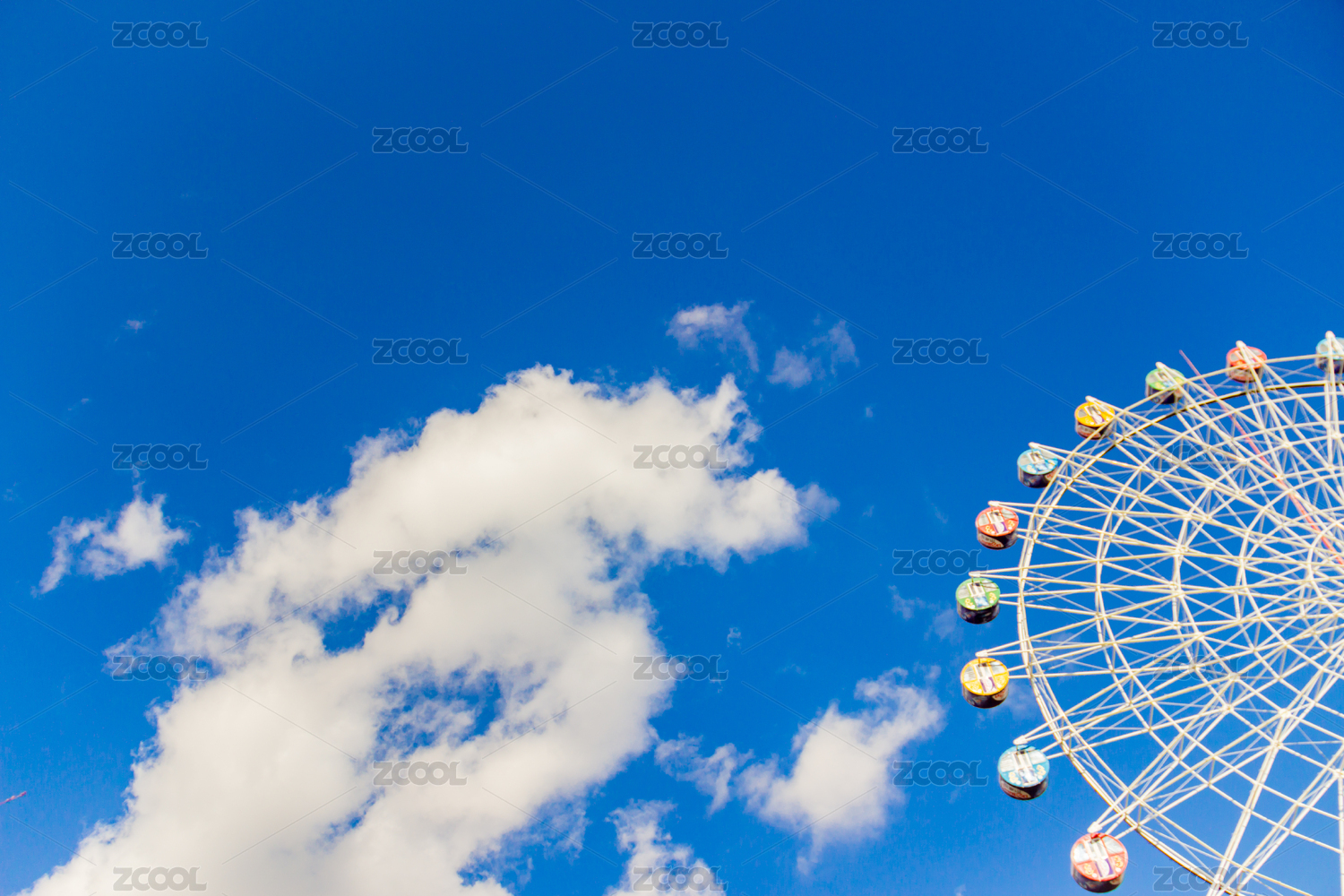晴朗蓝天白云下转动的摩天轮