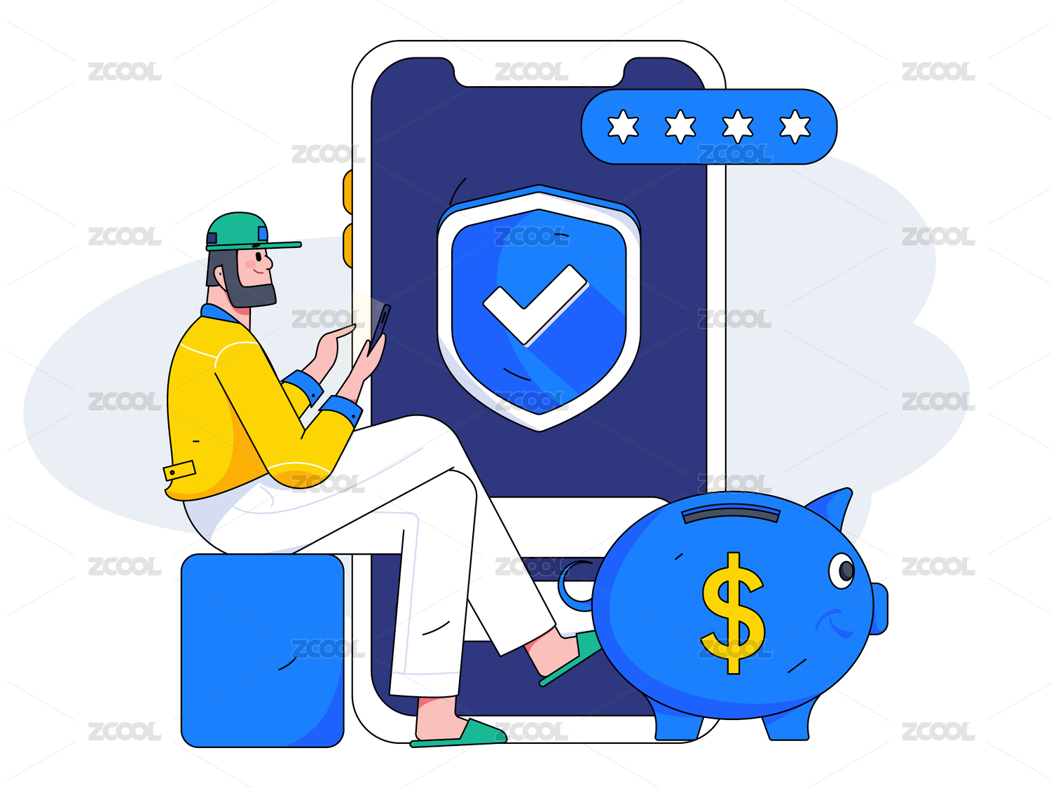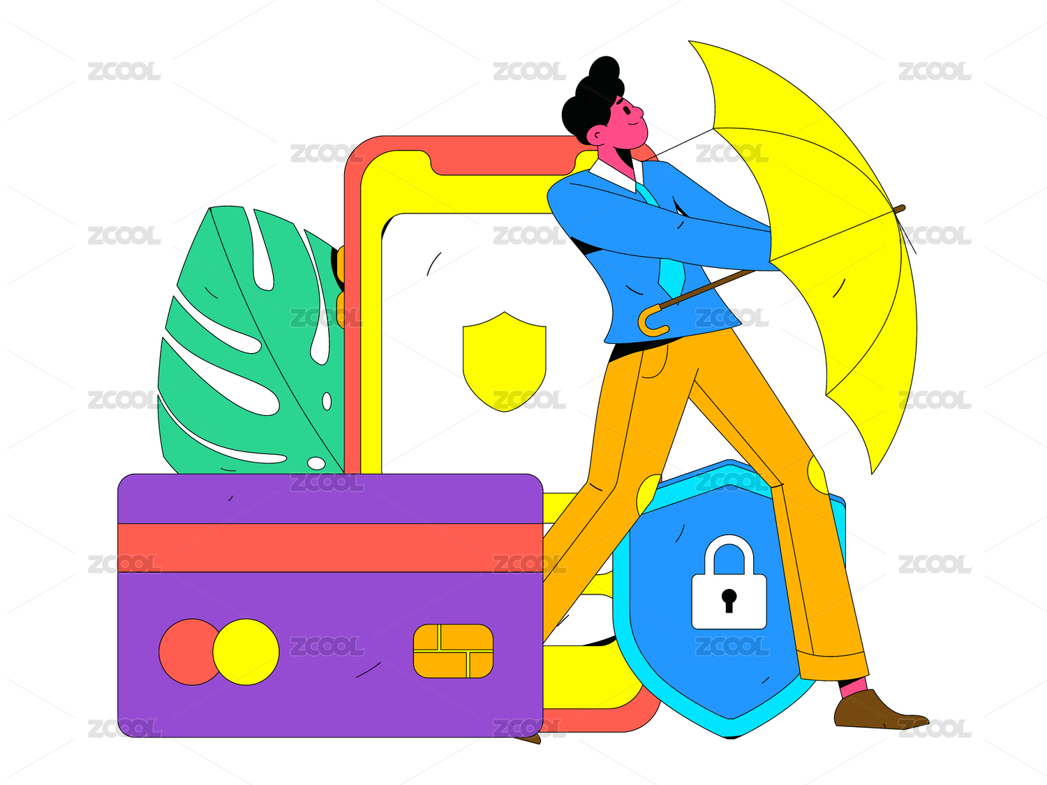 网络支付安全人物扁平矢量概念运营插画