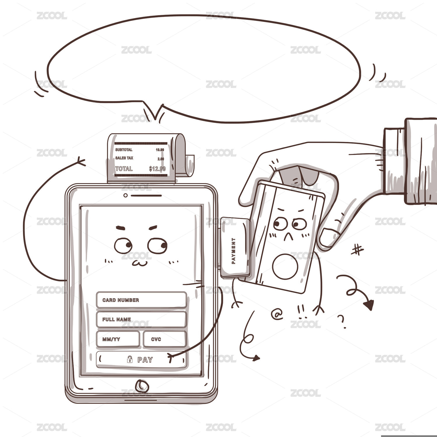 手绘线条-刷卡支付