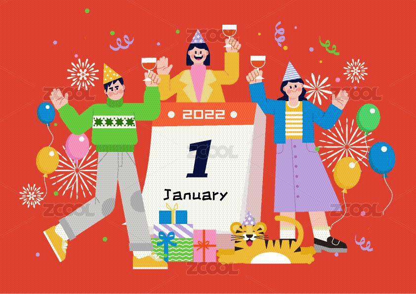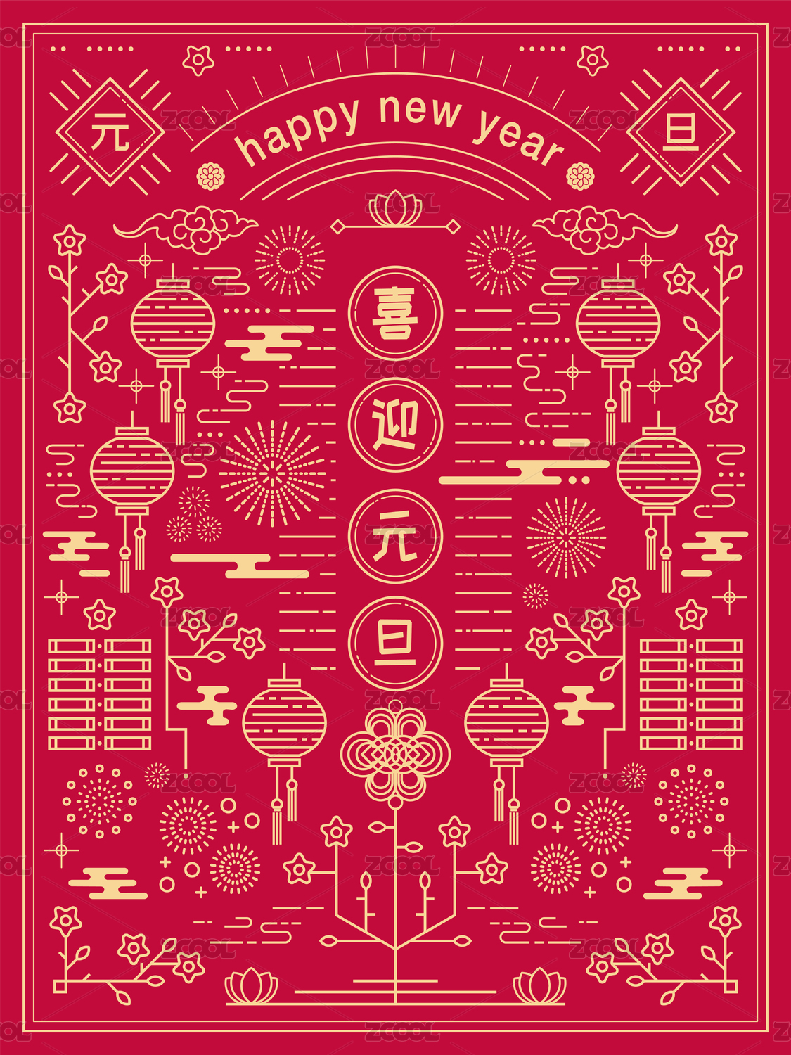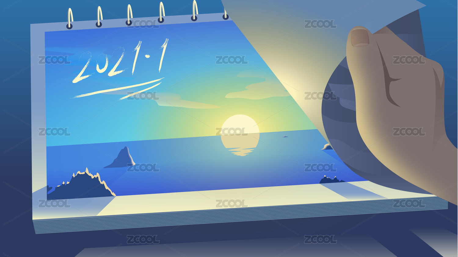 卡通2020鼠年元旦日历新年快乐背景矢量插画