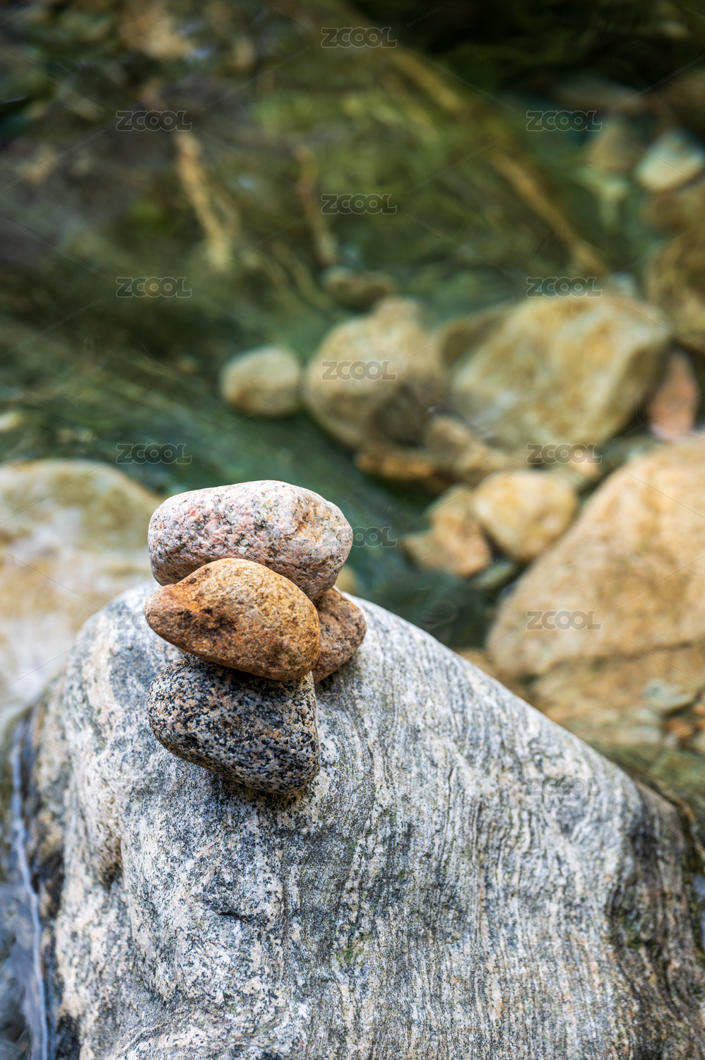 各种颜色的鹅软石堆叠在一起