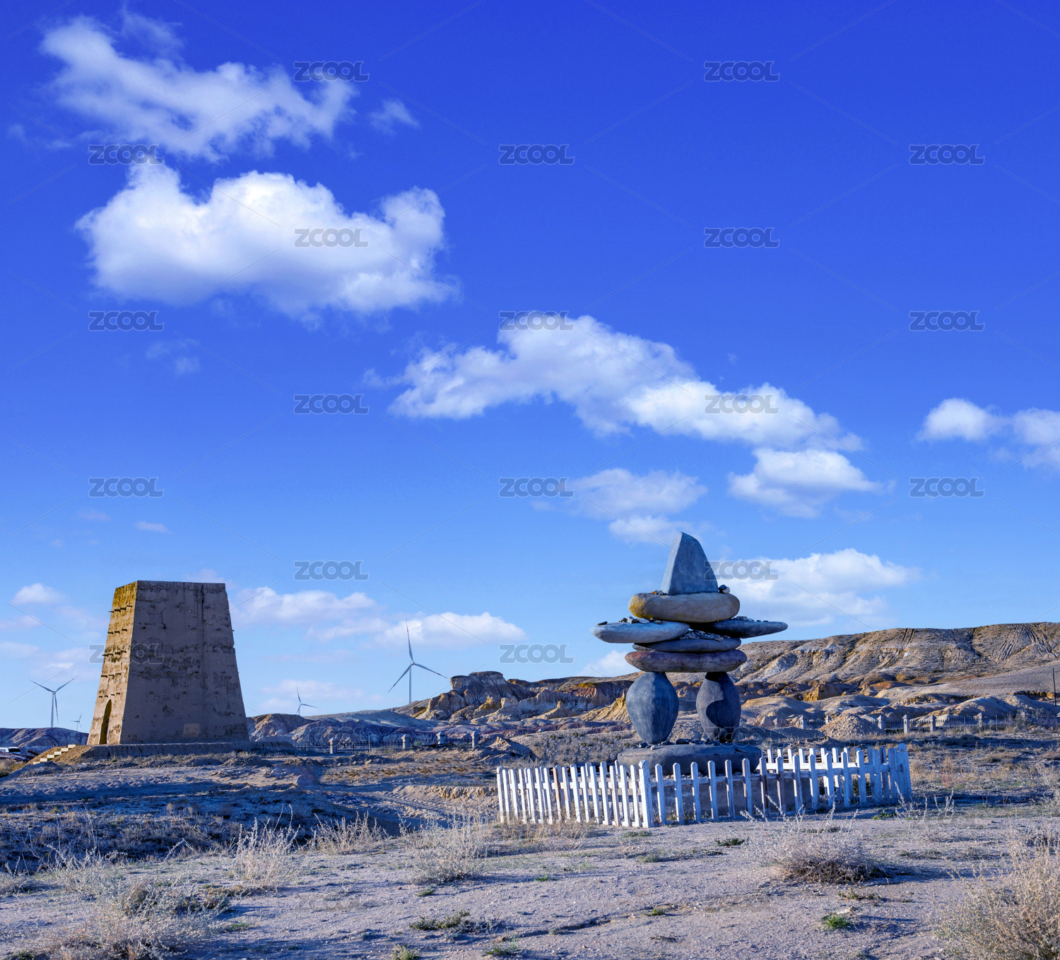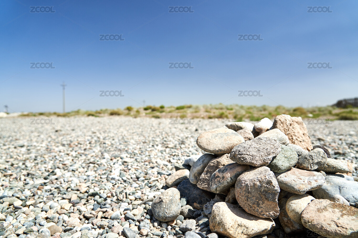 嘉峪关野外戈壁滩沙石中的石堆