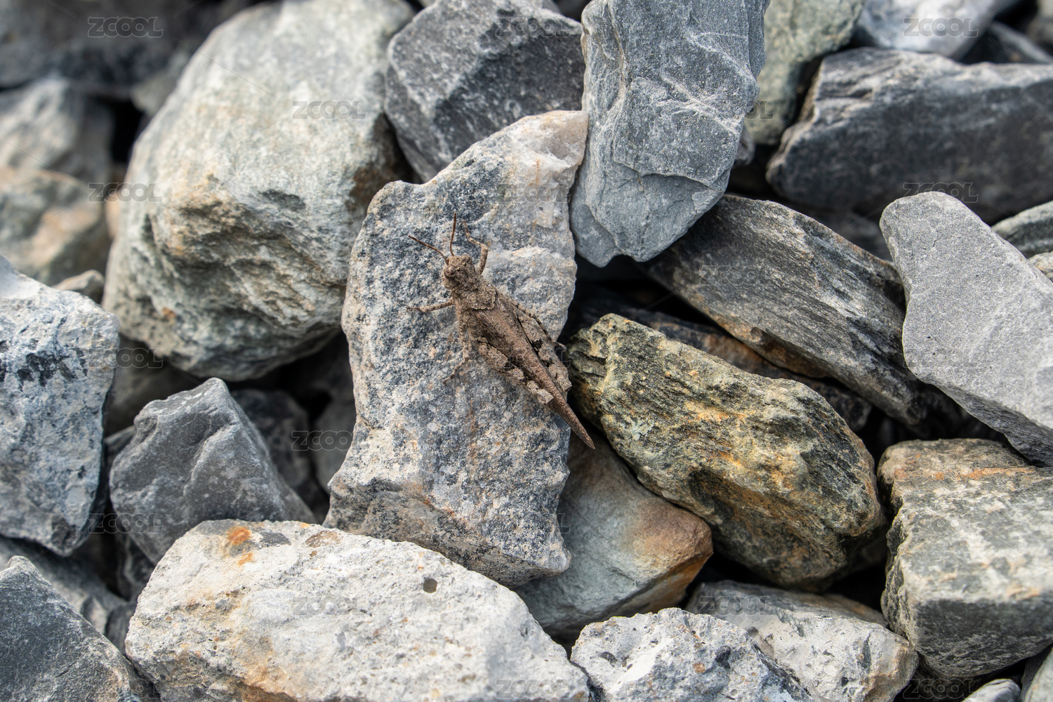 荒野石堆上的蝗虫