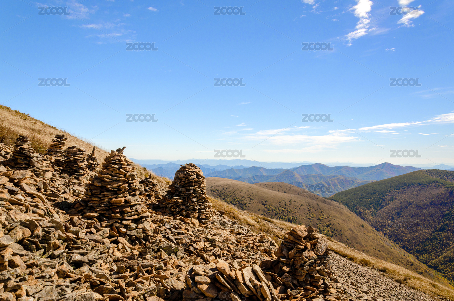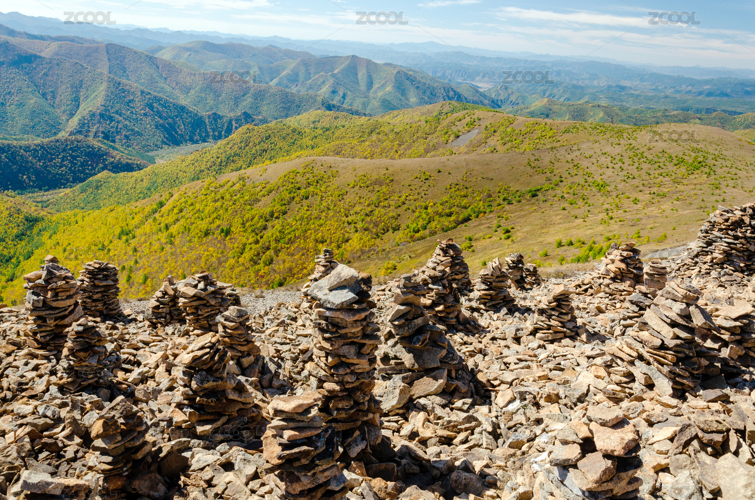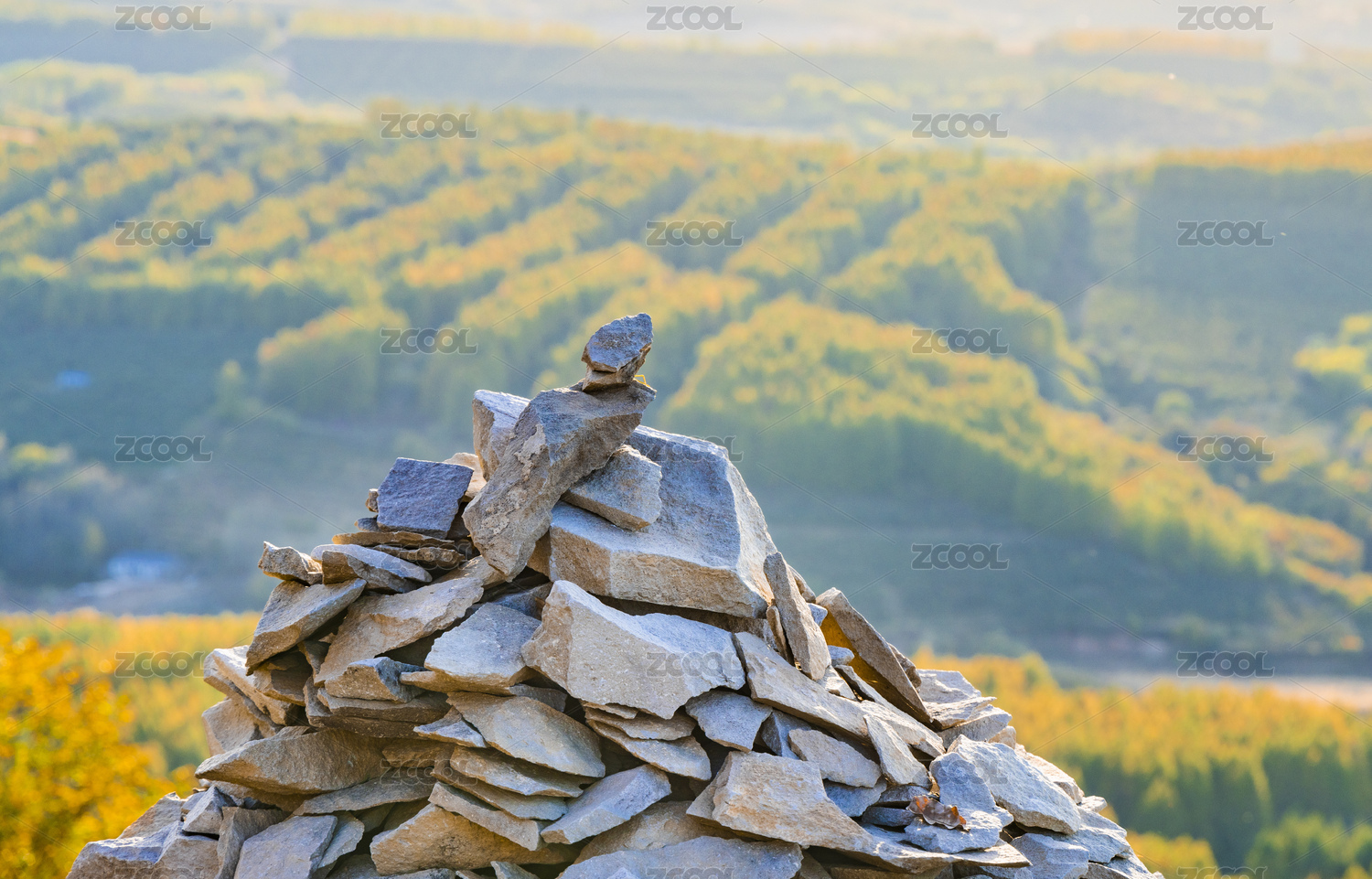秋天山顶石堆