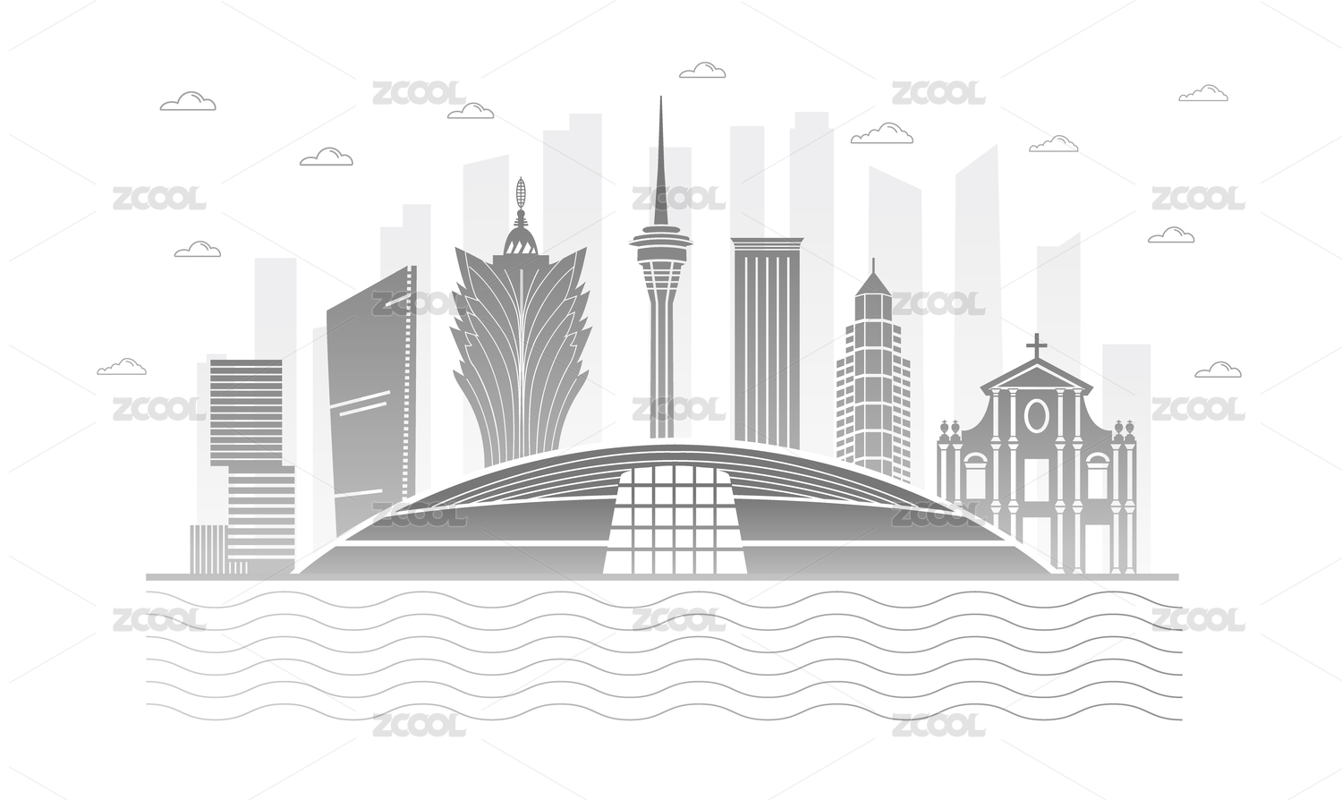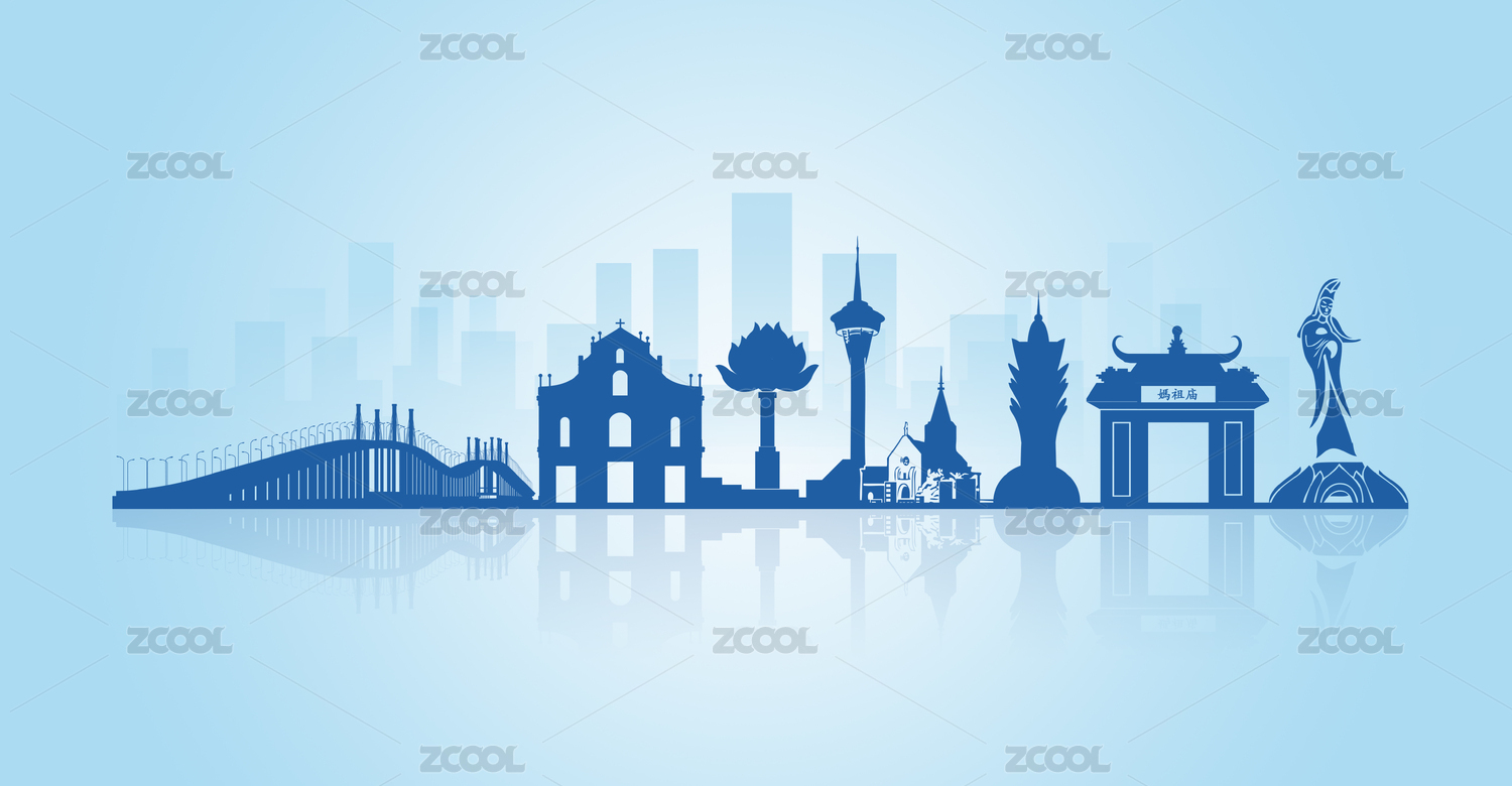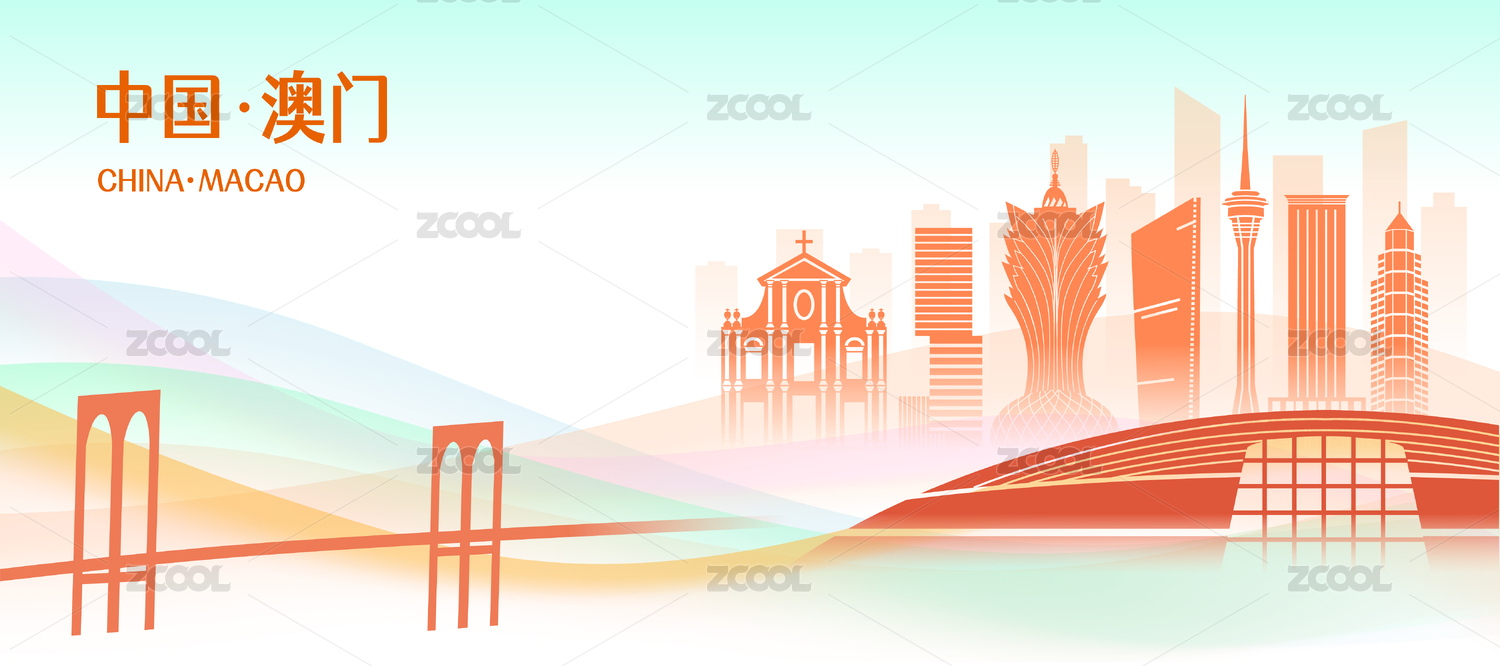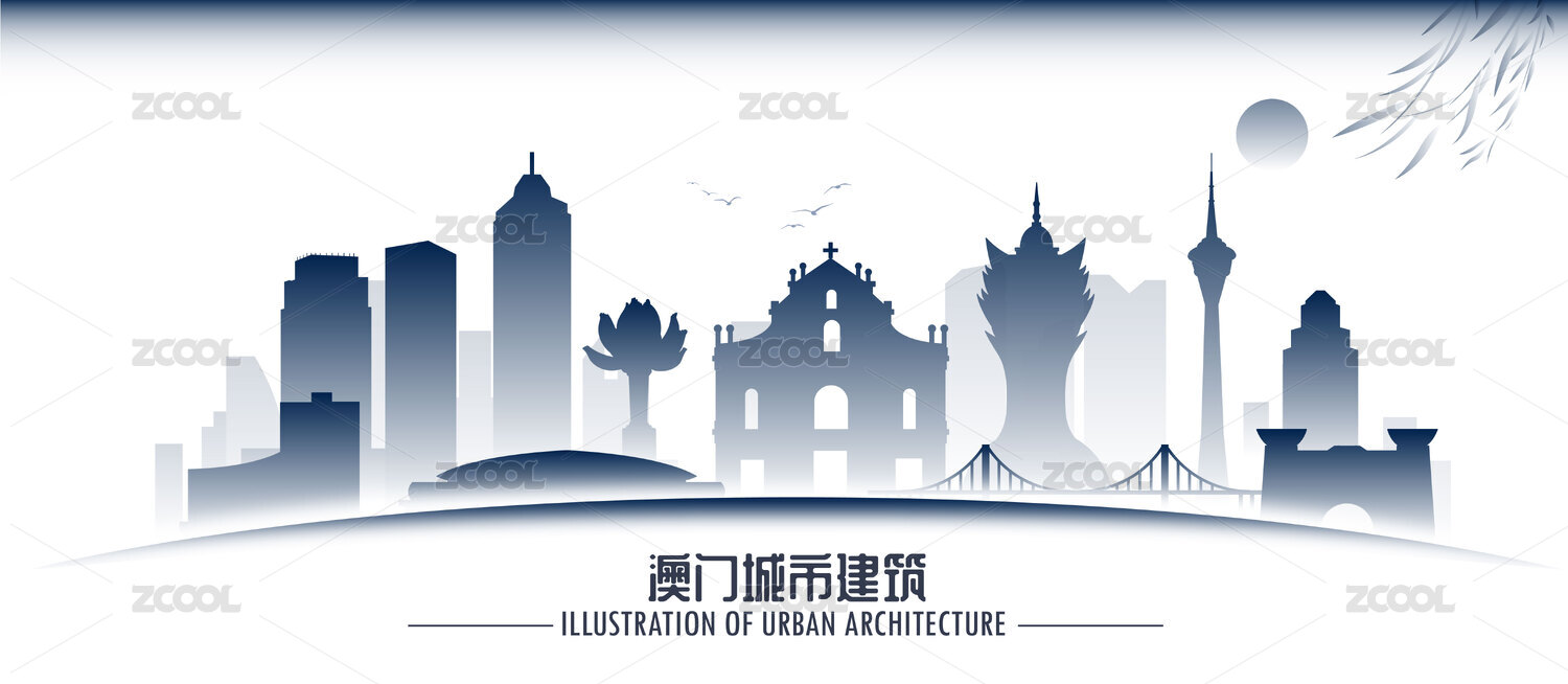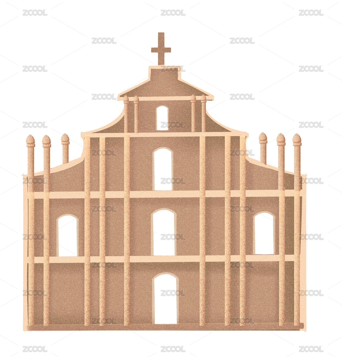 小清新风格澳门城市地标建筑大三巴牌坊元素