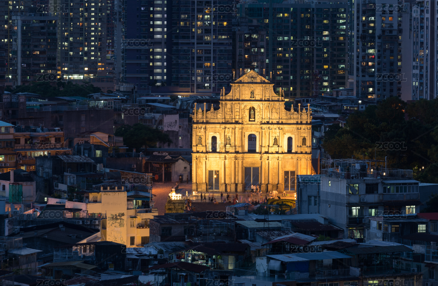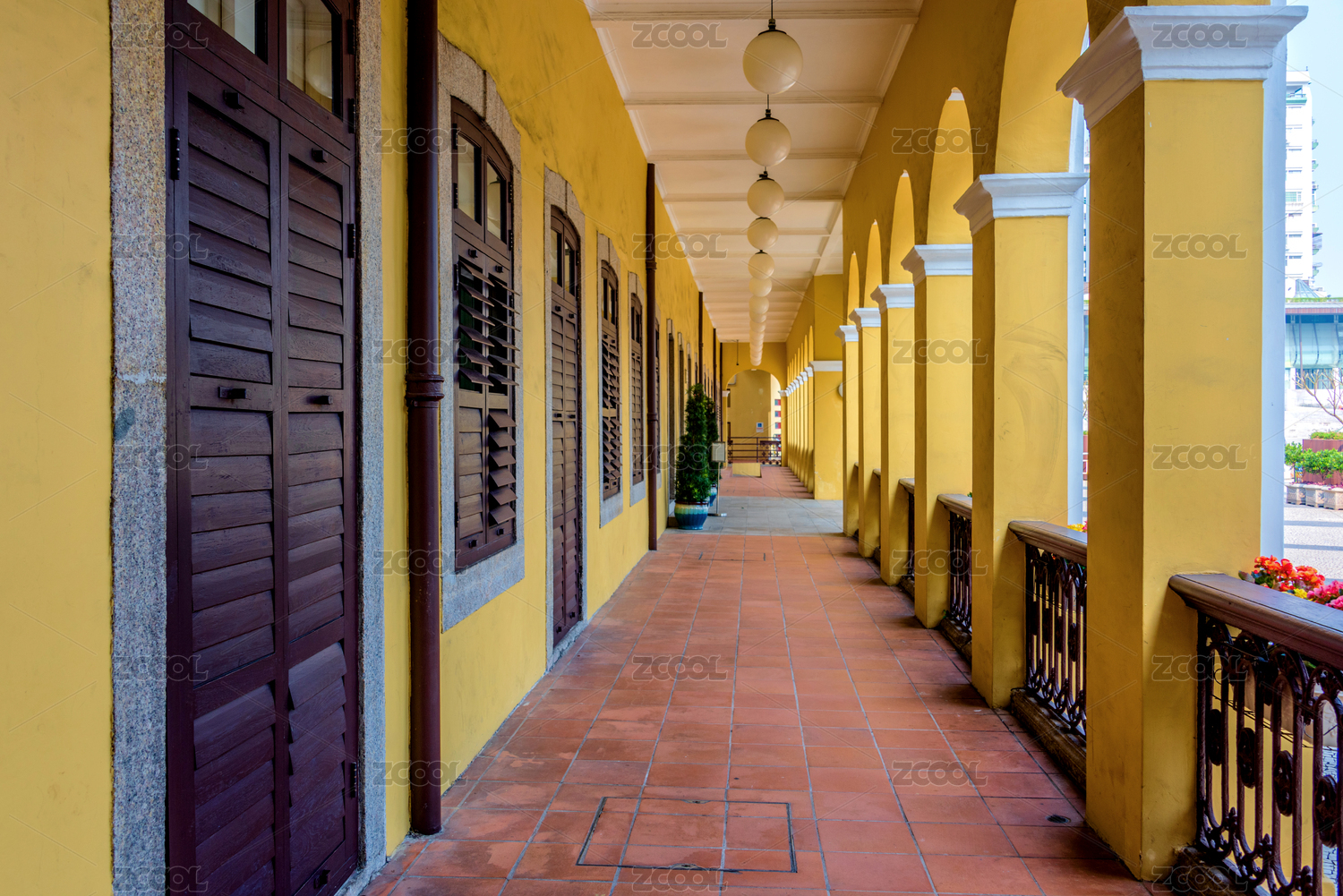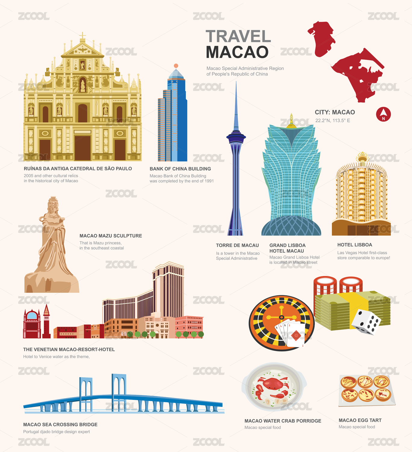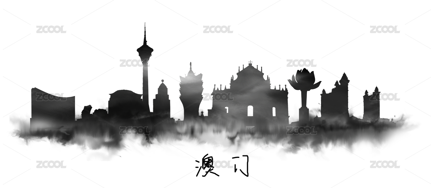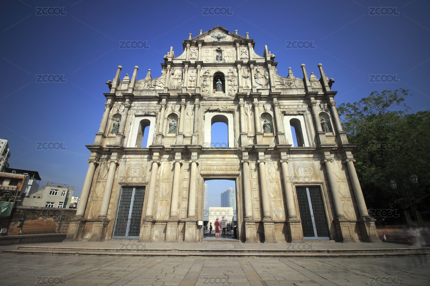 小清新风格澳门城市地标建筑大三巴牌坊元素