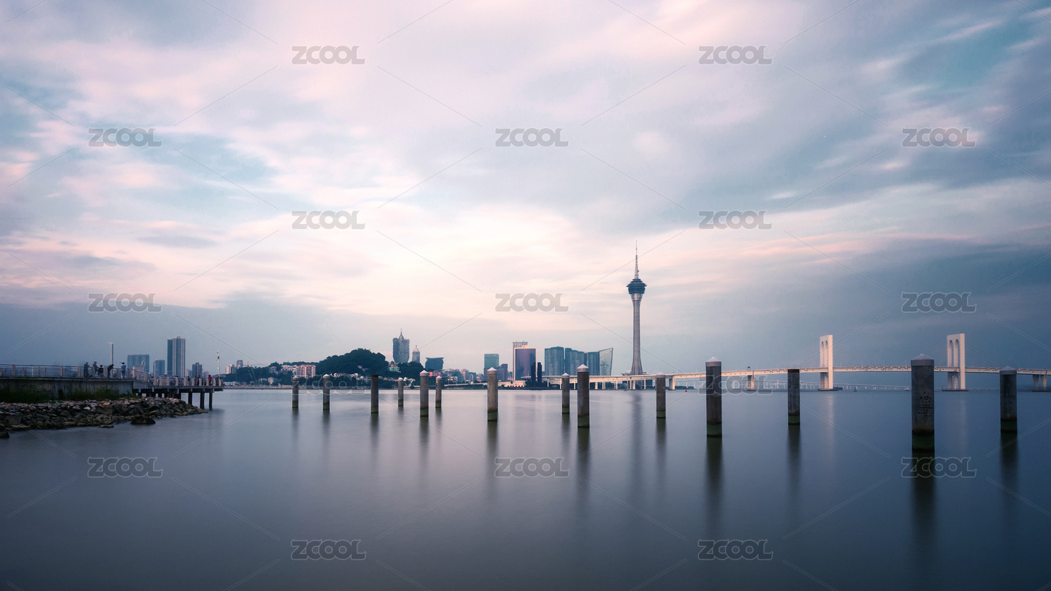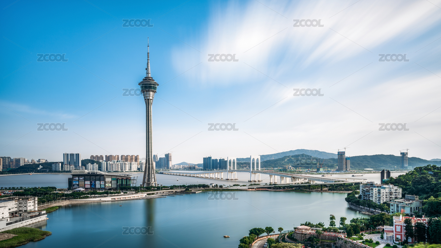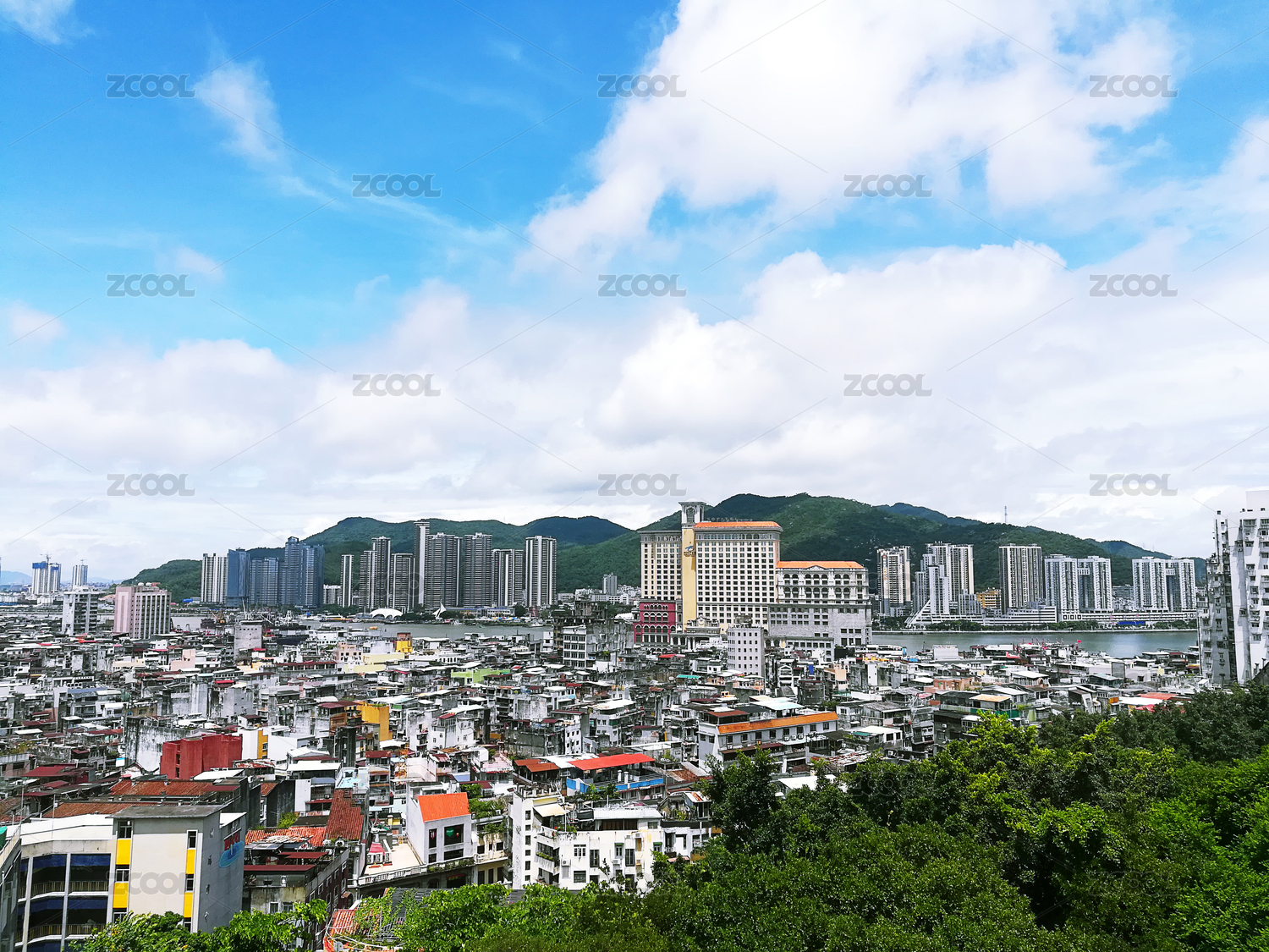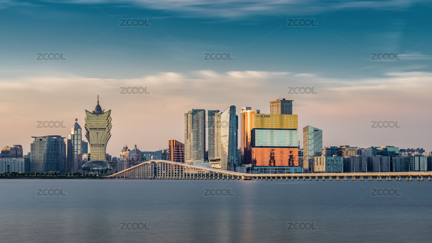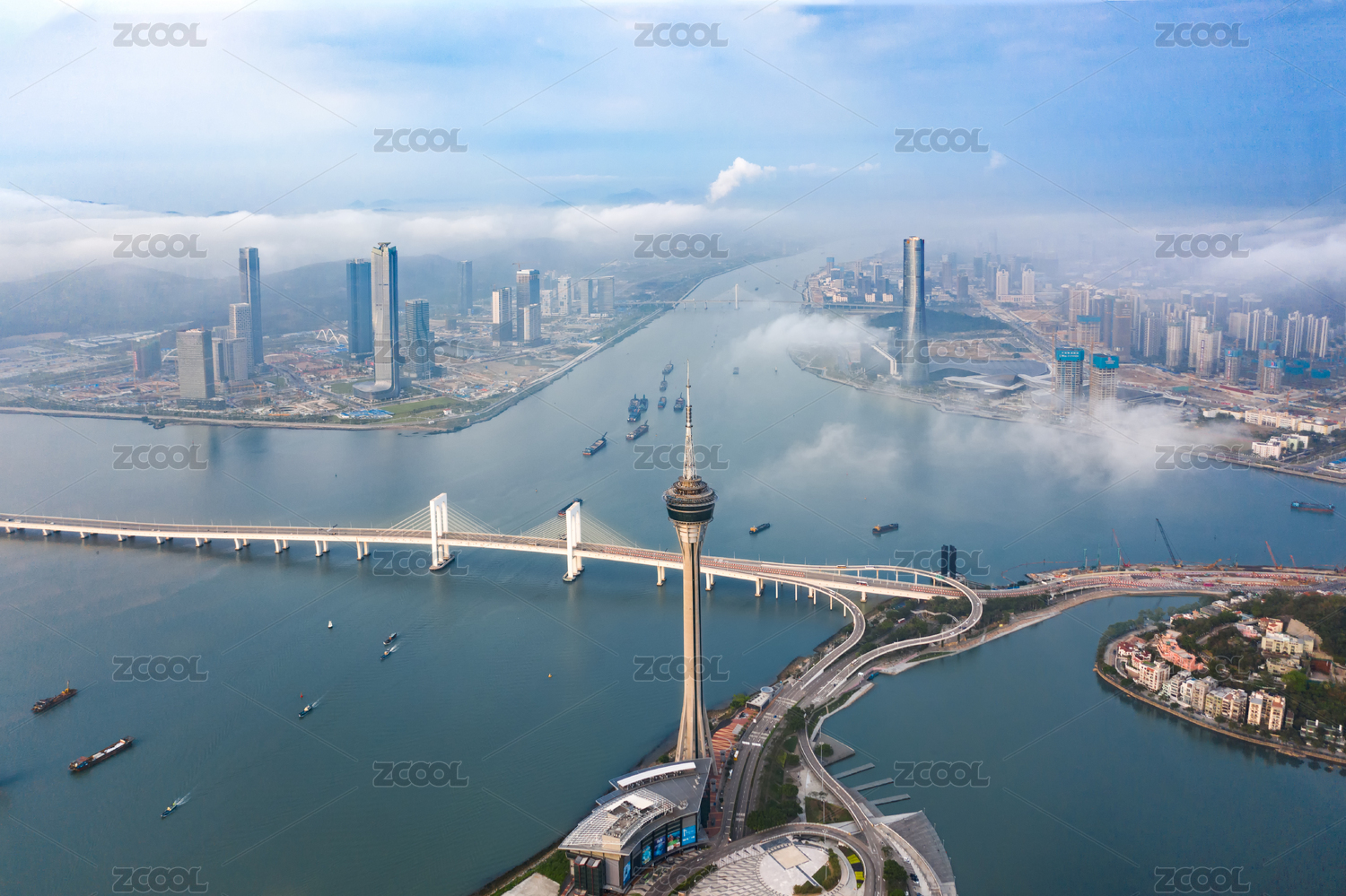 中国大湾区澳门与珠海横琴天际线风光航拍