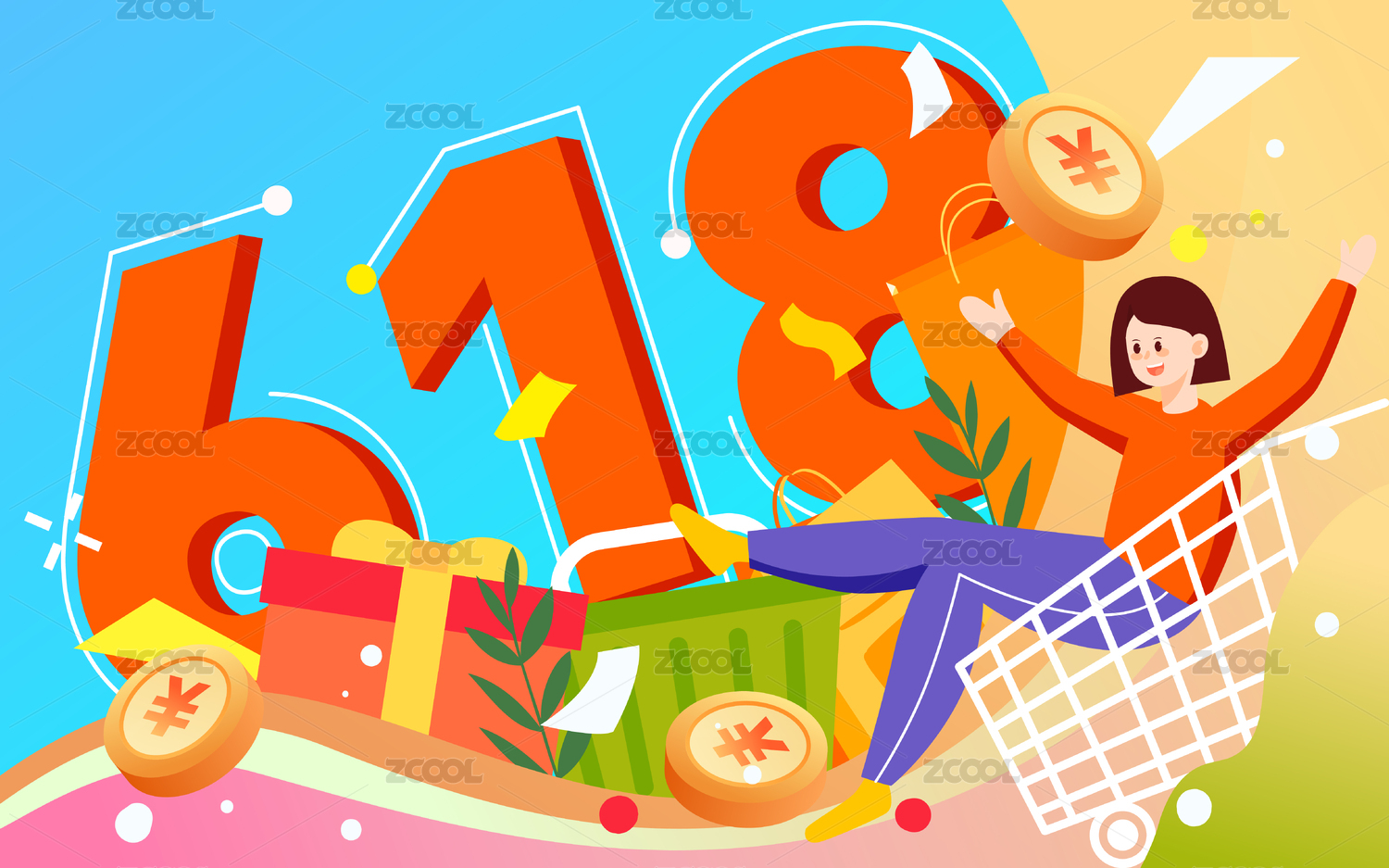 618艺术字电商购物节的插画