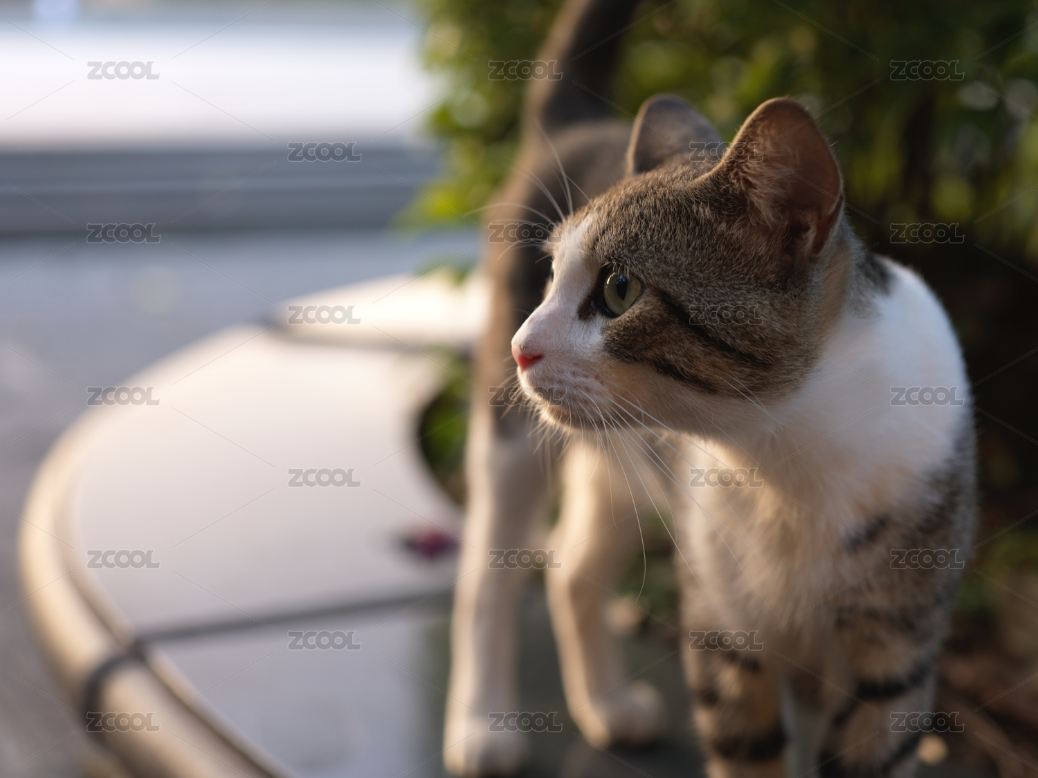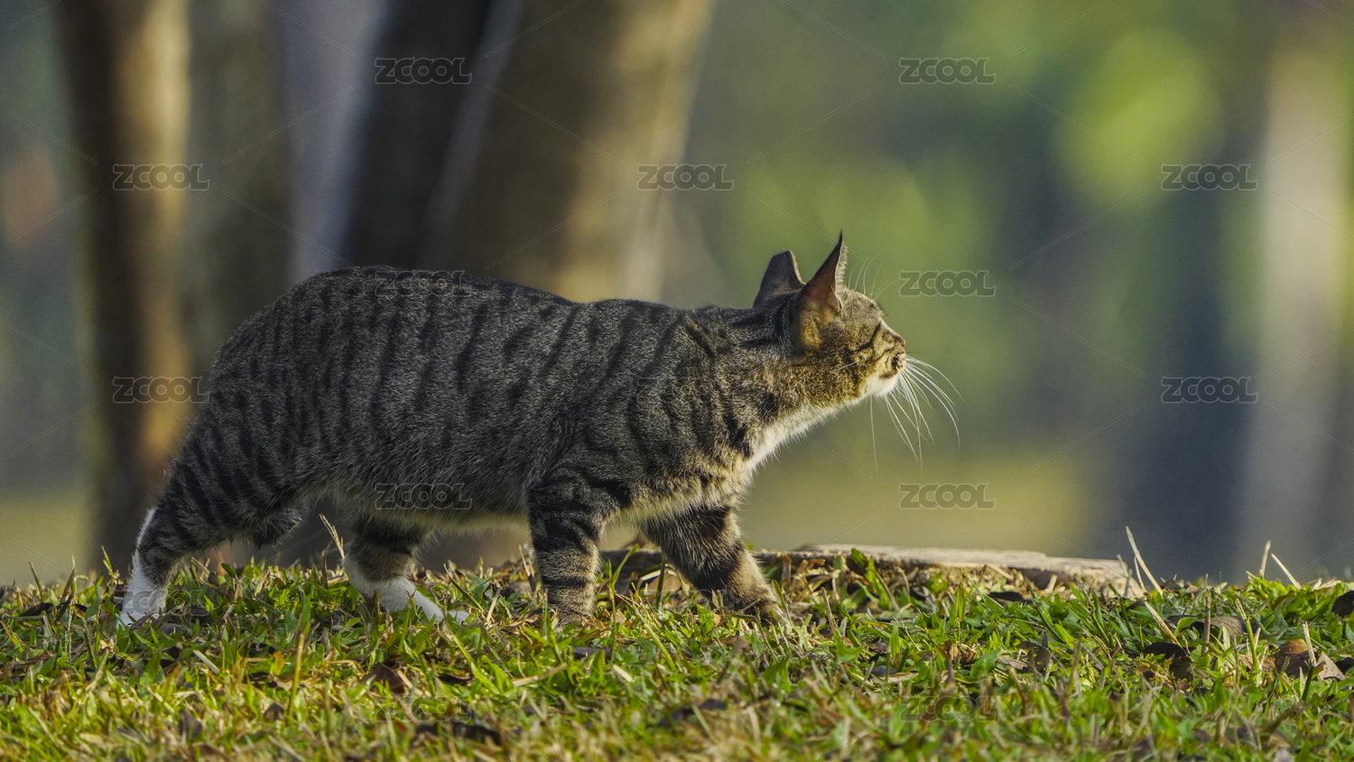 深圳莲花山公园阳光下的虎斑猫漫步