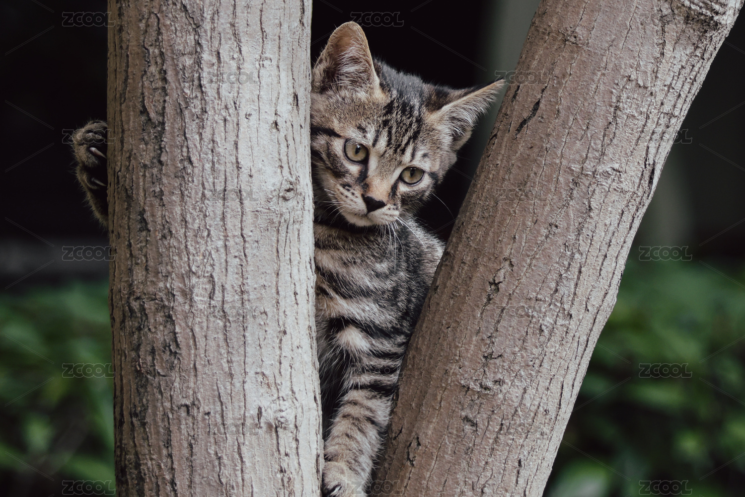 树杈间的虎斑猫幼崽