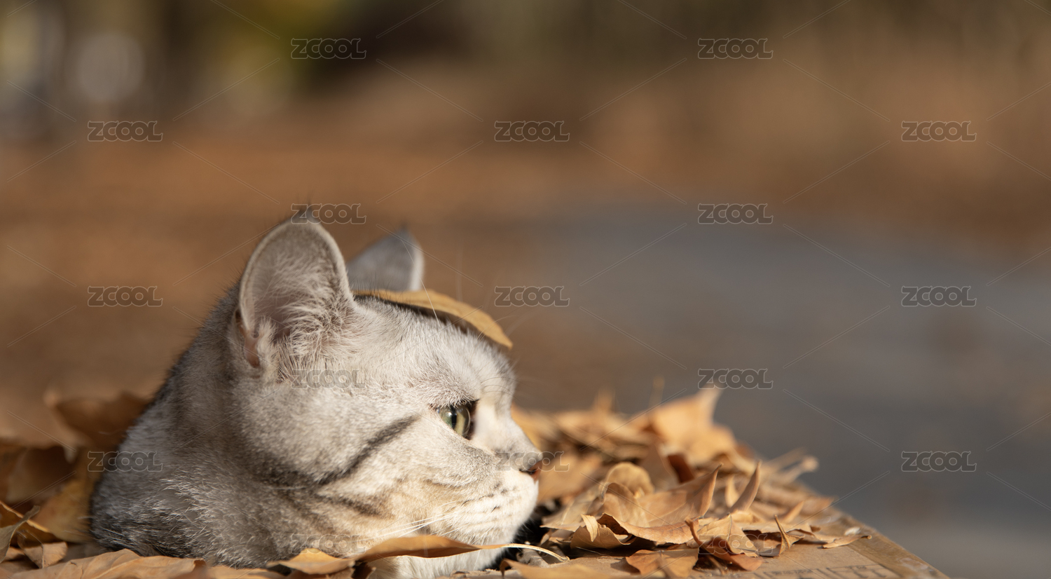 可爱的虎斑猫在秋季的公园里