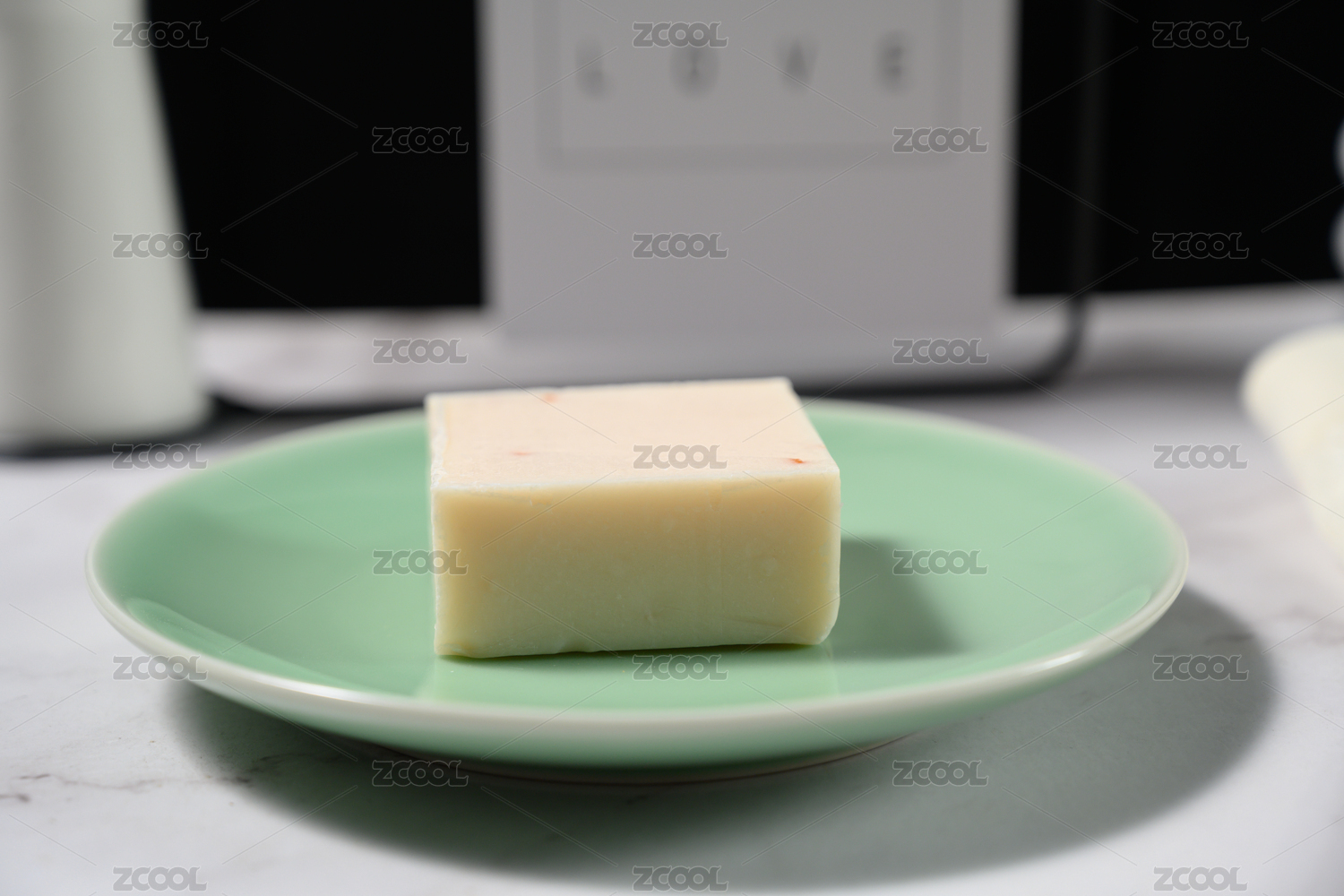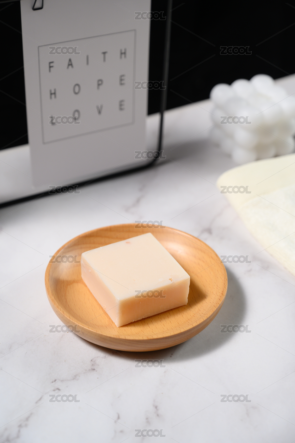 台面上白色的方形肥皂