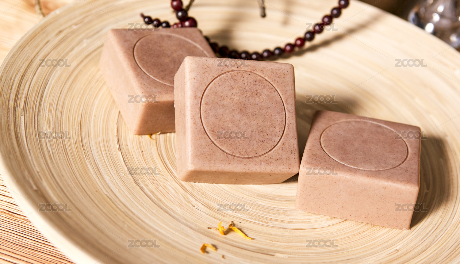 桌面上的盘子里的香气四溢的手工肥皂