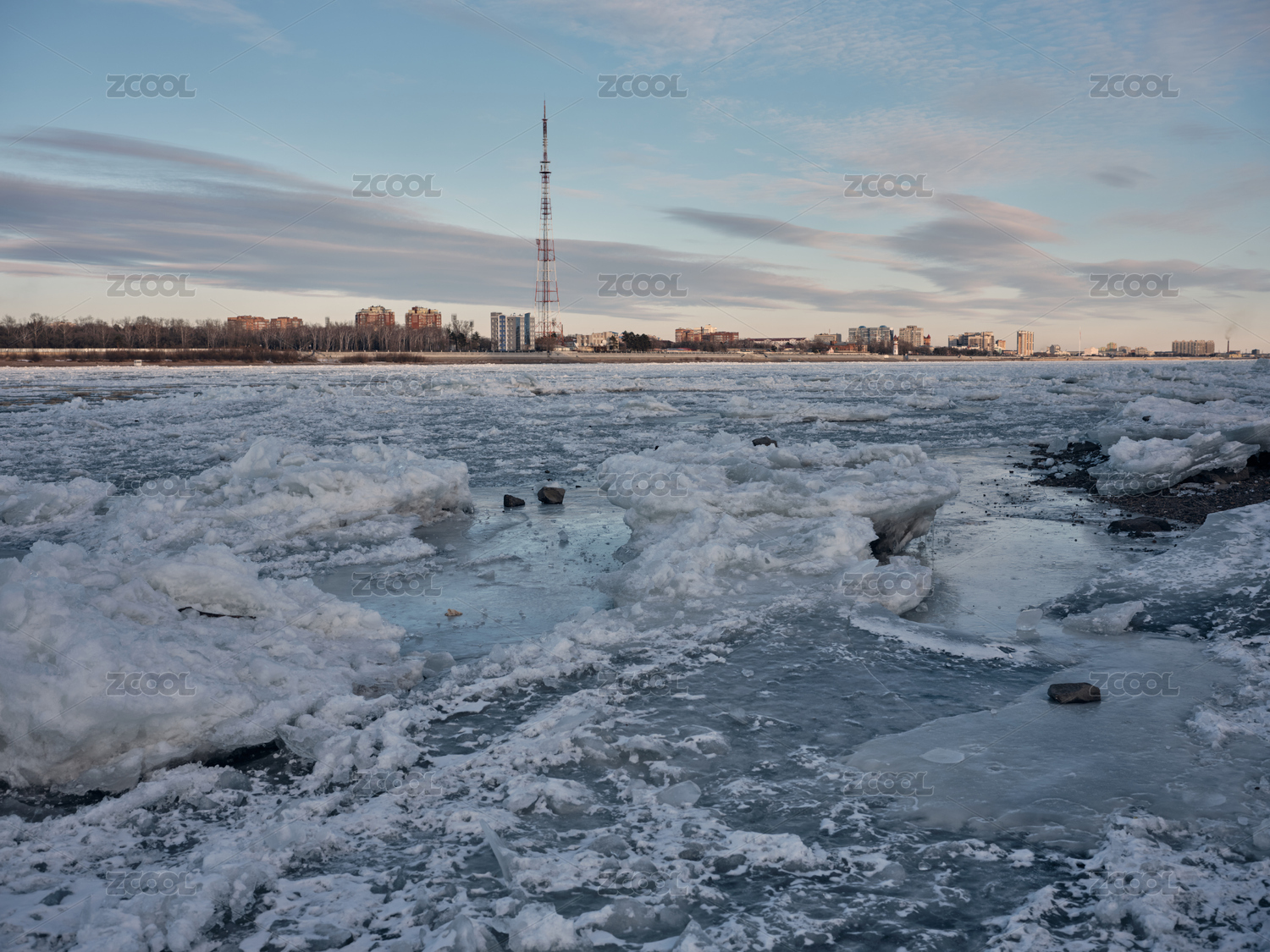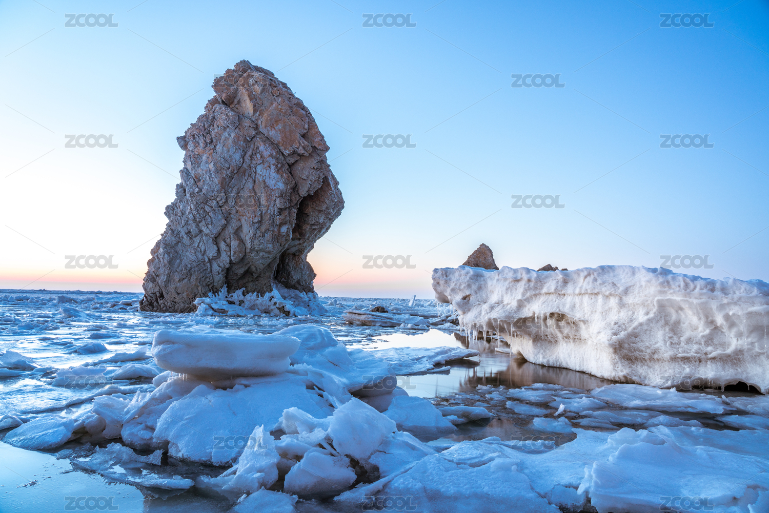 中国秦皇岛北戴河冬日海岸浮冰景观