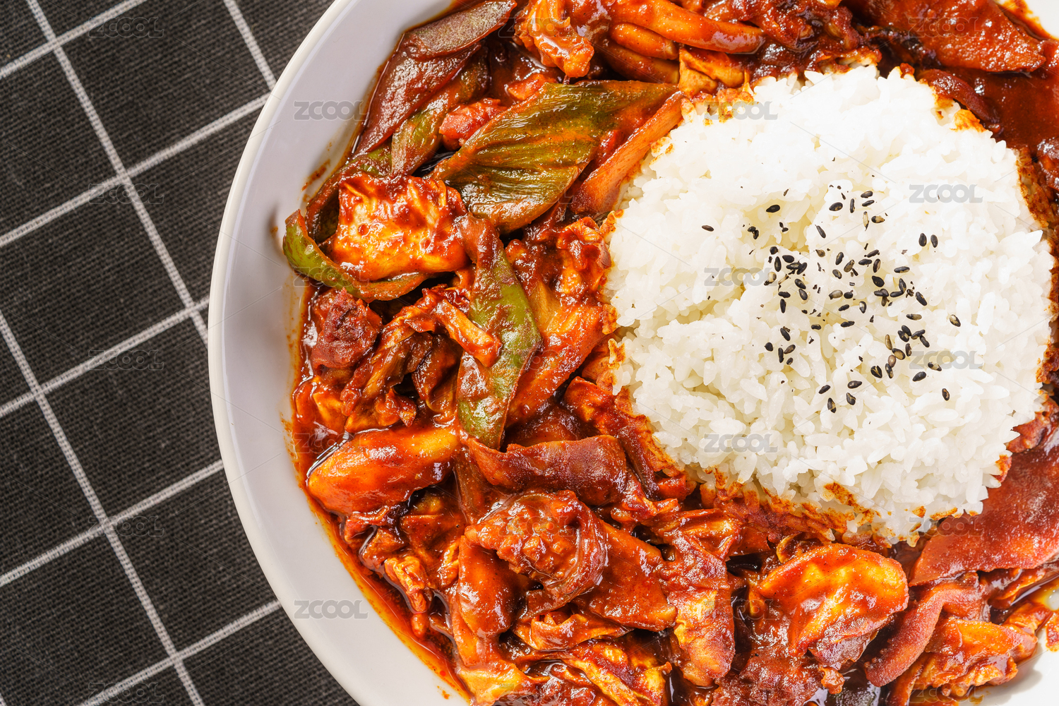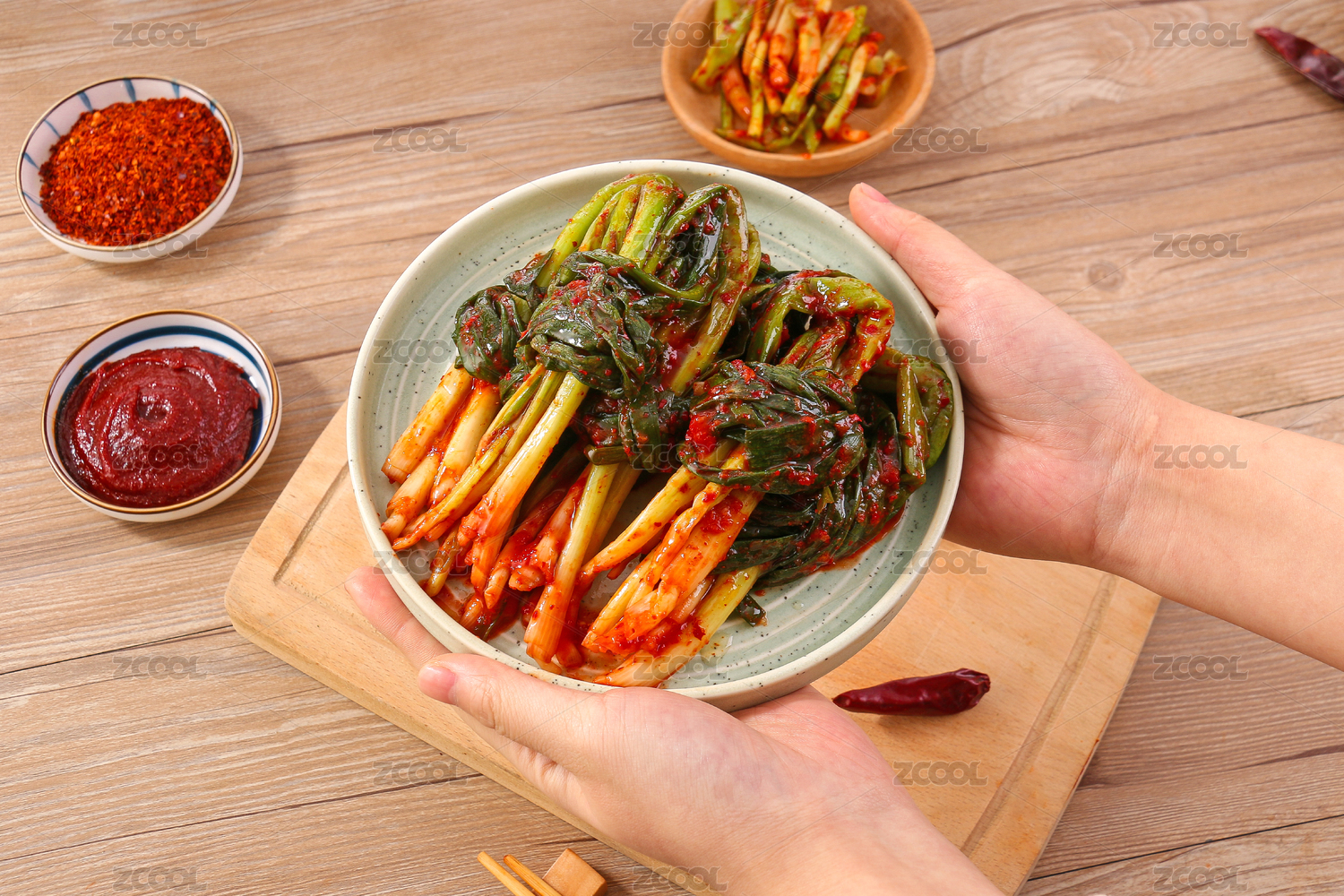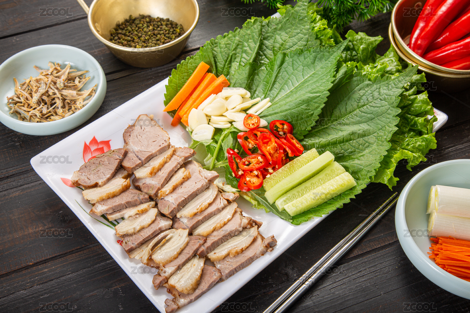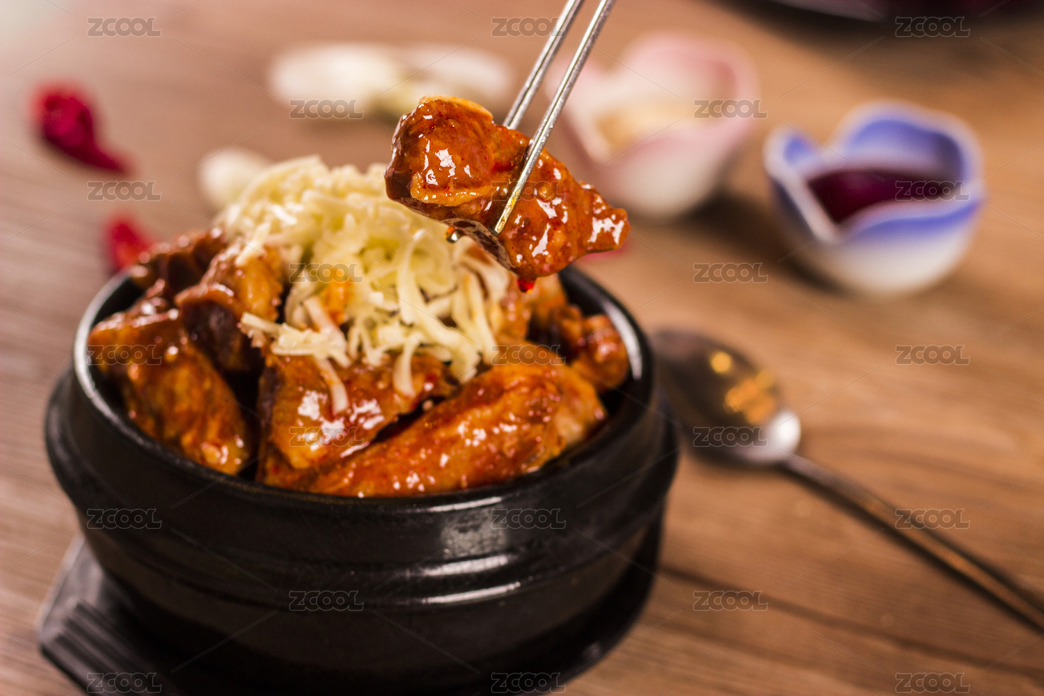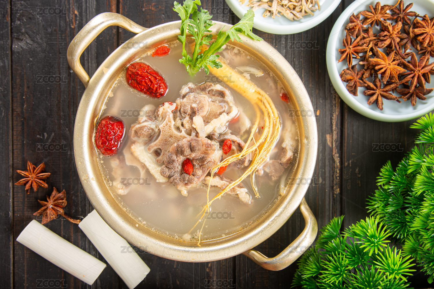 韩餐馆餐桌上新鲜出炉的小白菜牛排骨汤美食