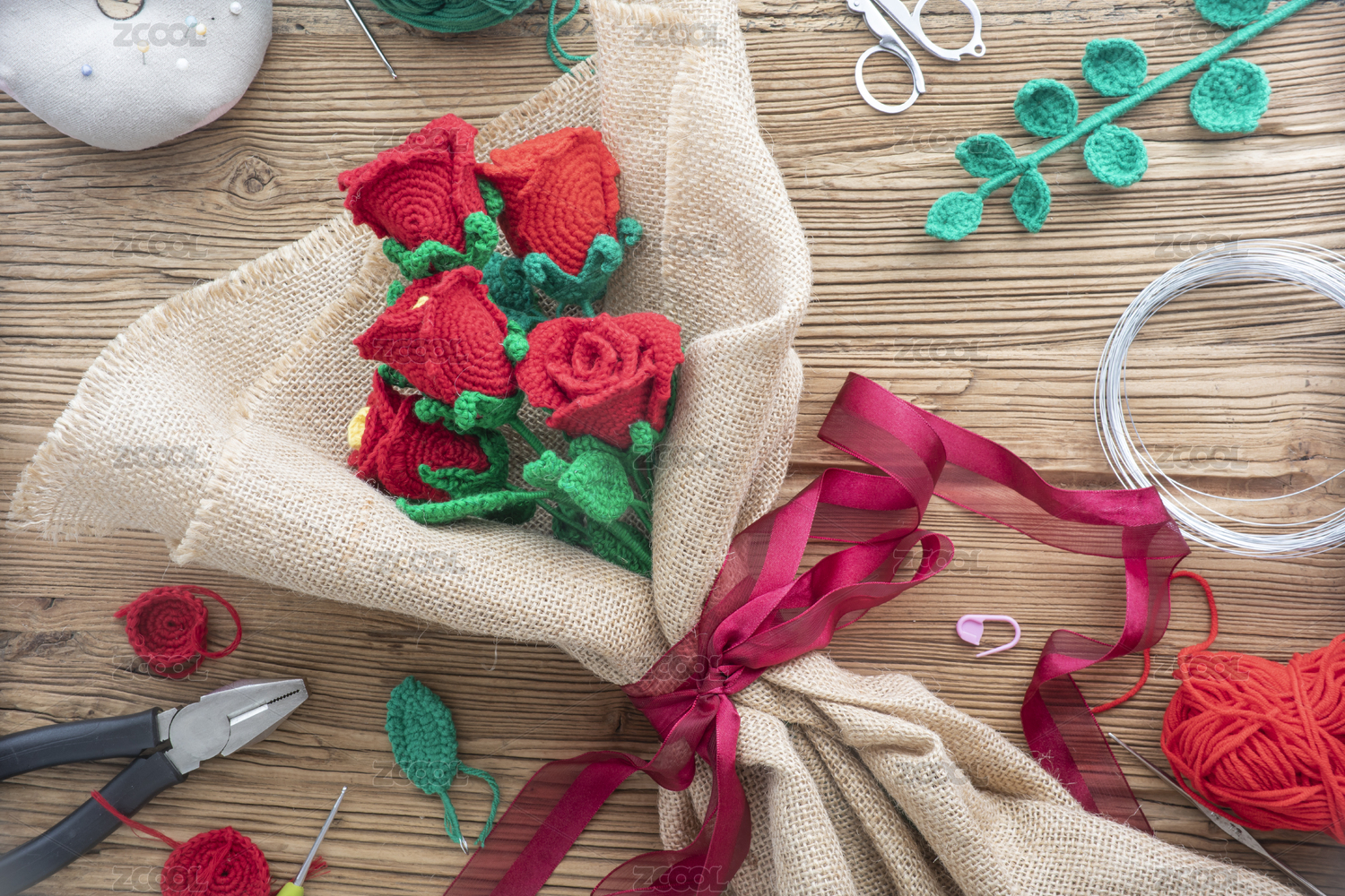 手工毛线玫瑰花