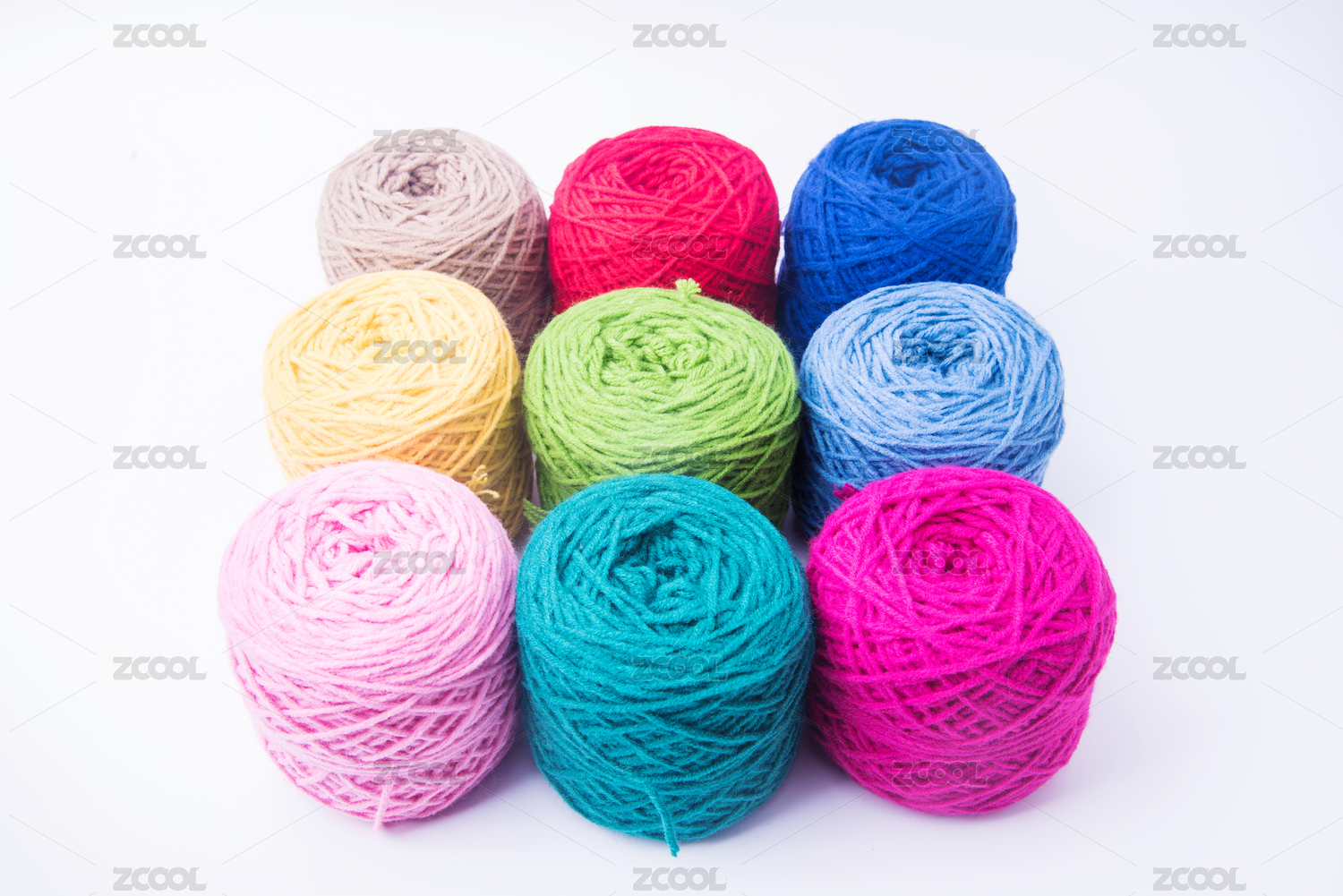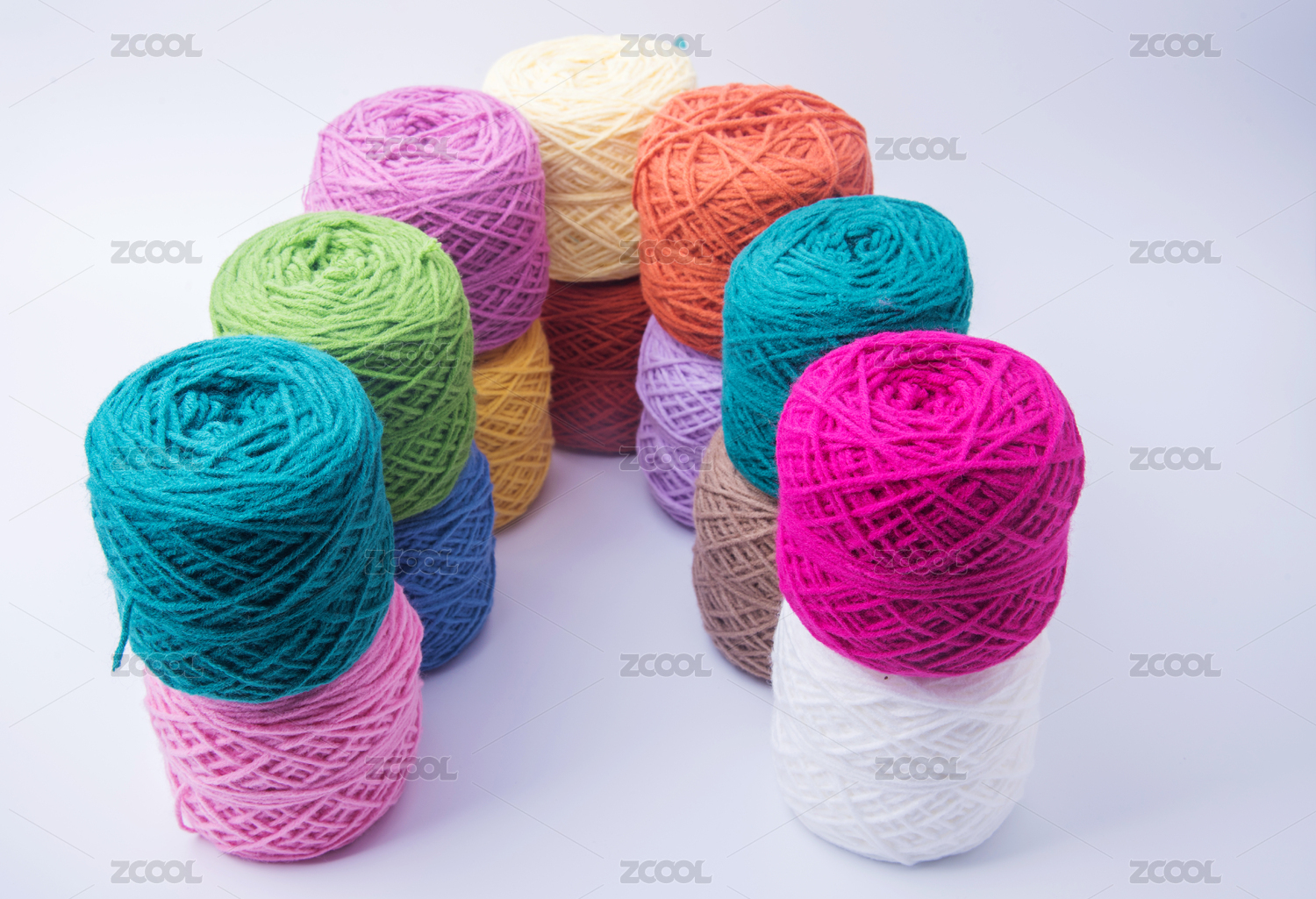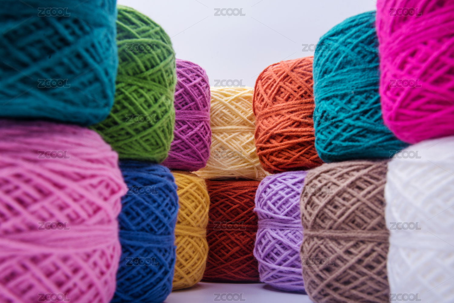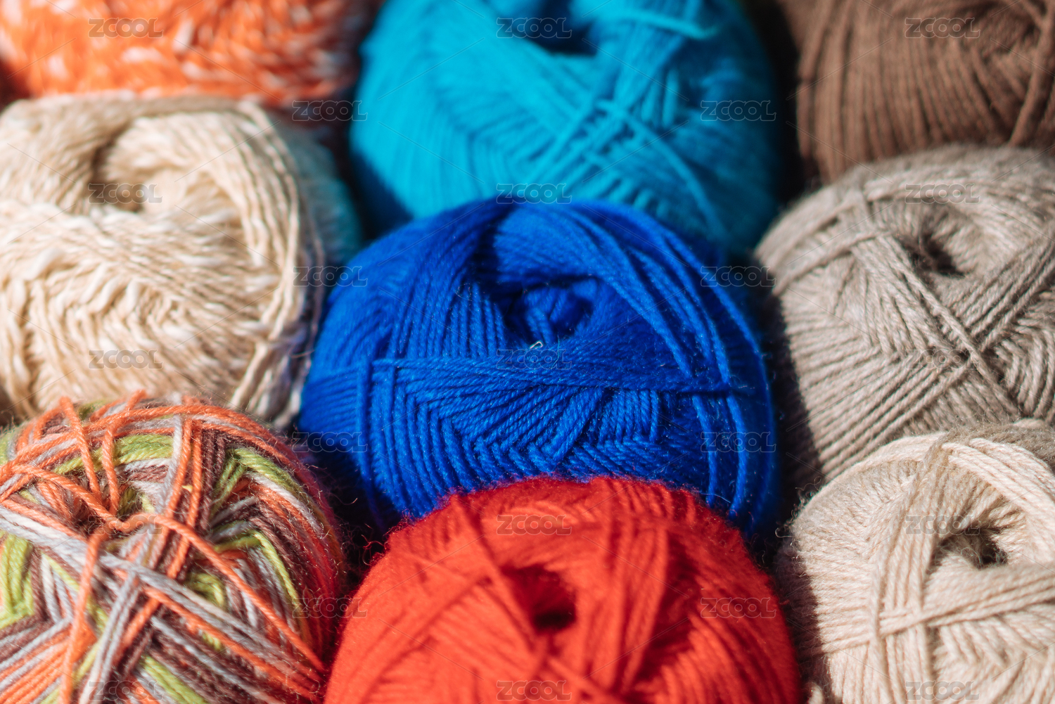 五颜六色的摆放整齐的编织毛线团