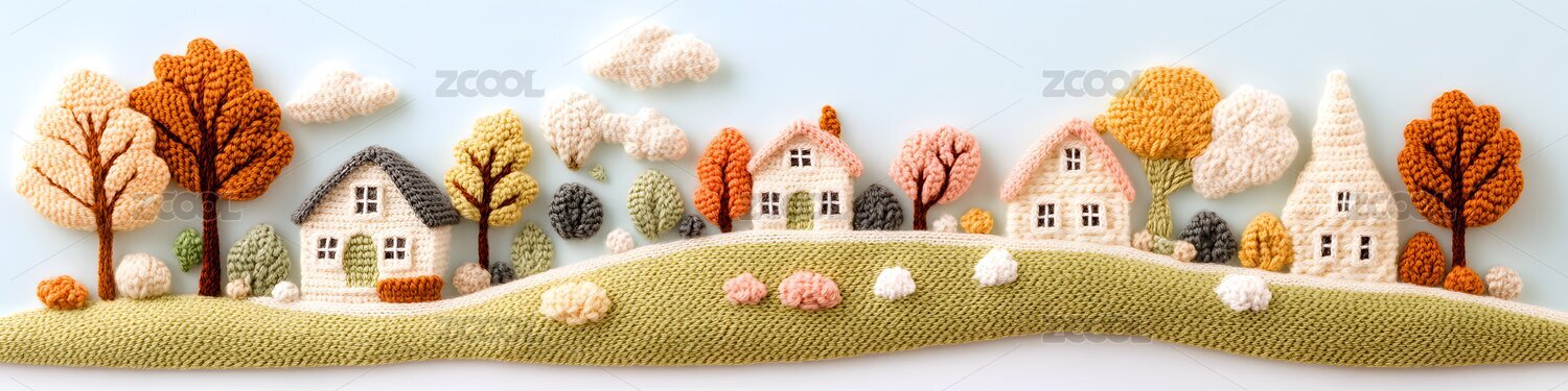 毛线编织风格秋季风景小镇房屋背景