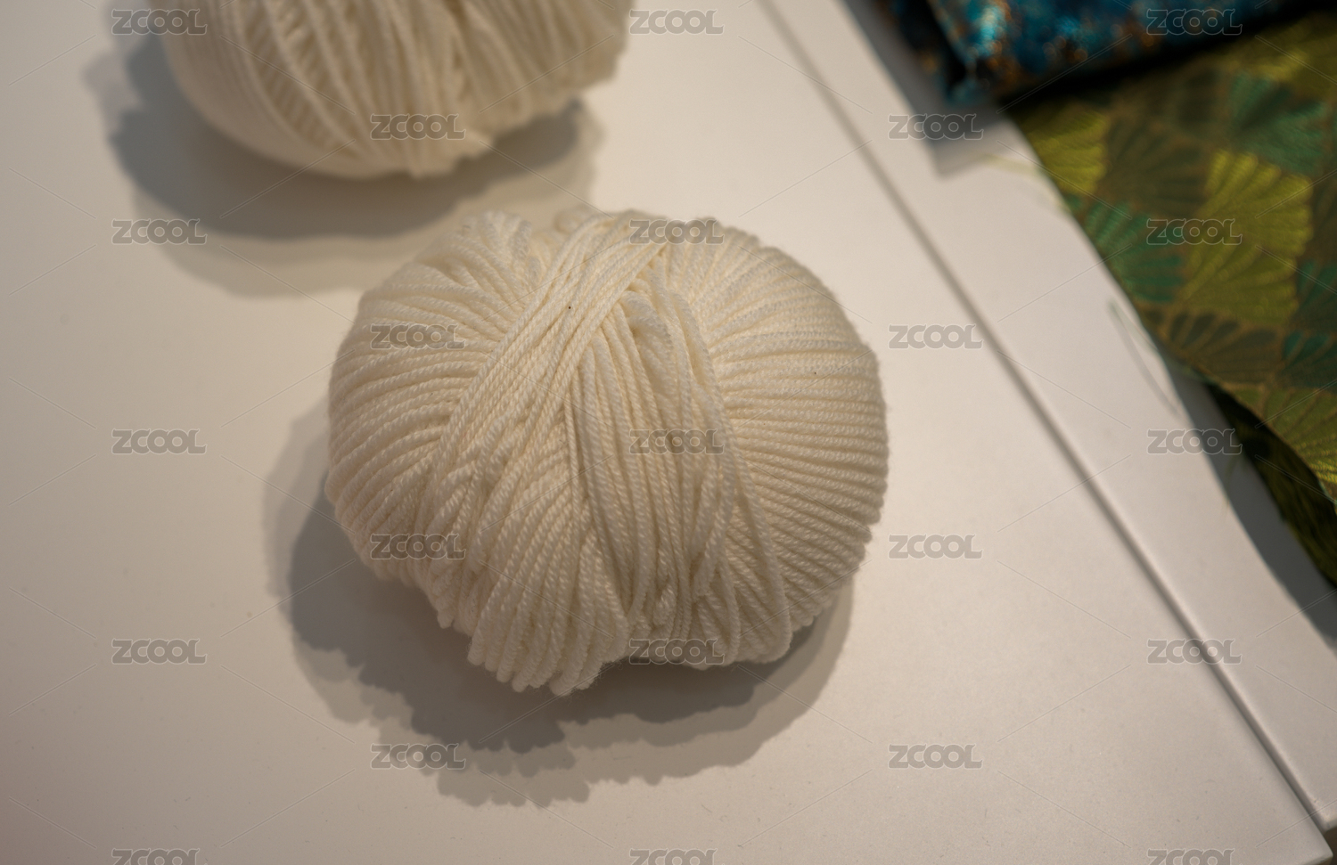 白色毛线球放置在白色桌面上