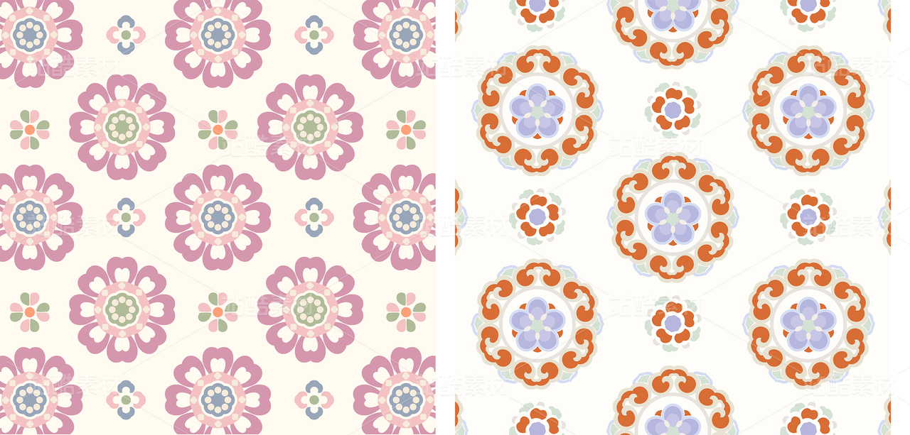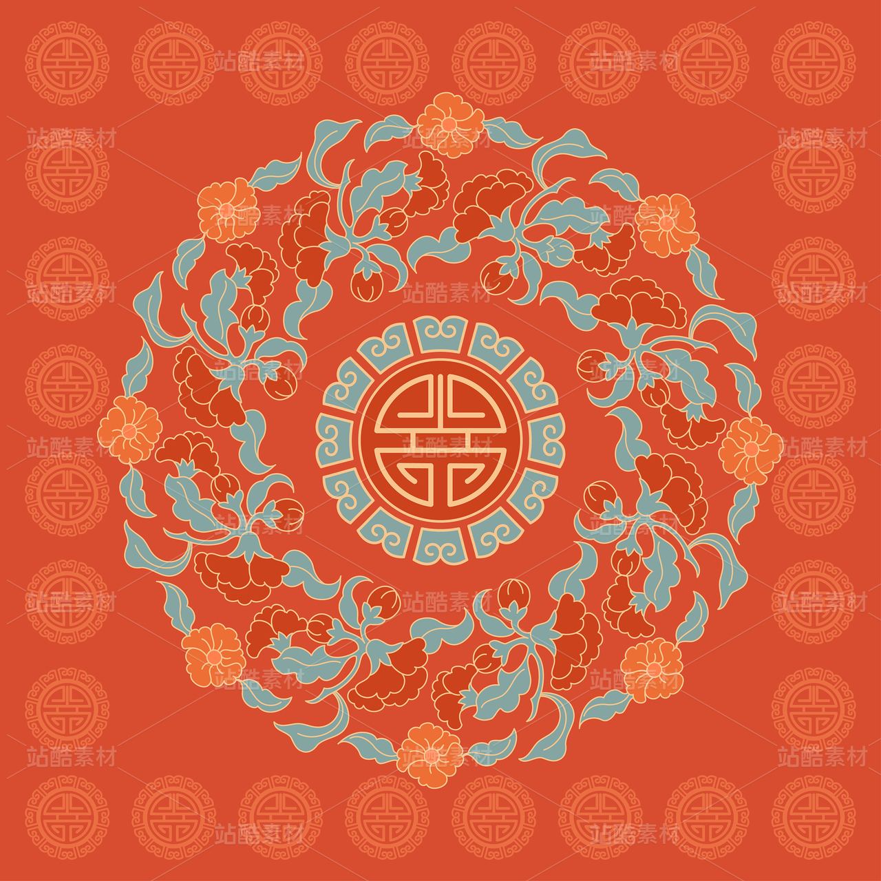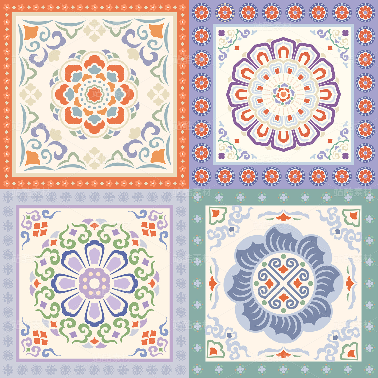唐朝敦煌牡丹团花莲花卷草纹藻井花纹中国纹样插画