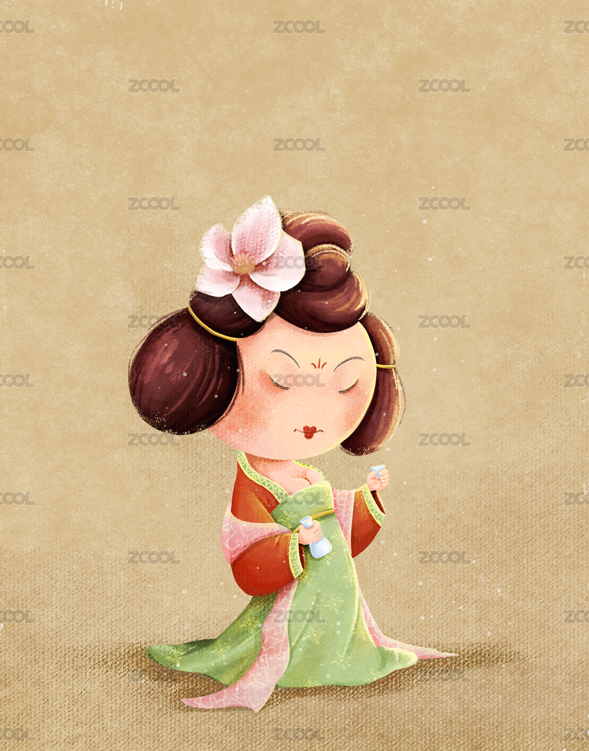 唐朝皇帝与贵妃站立全身像卡通人物插画