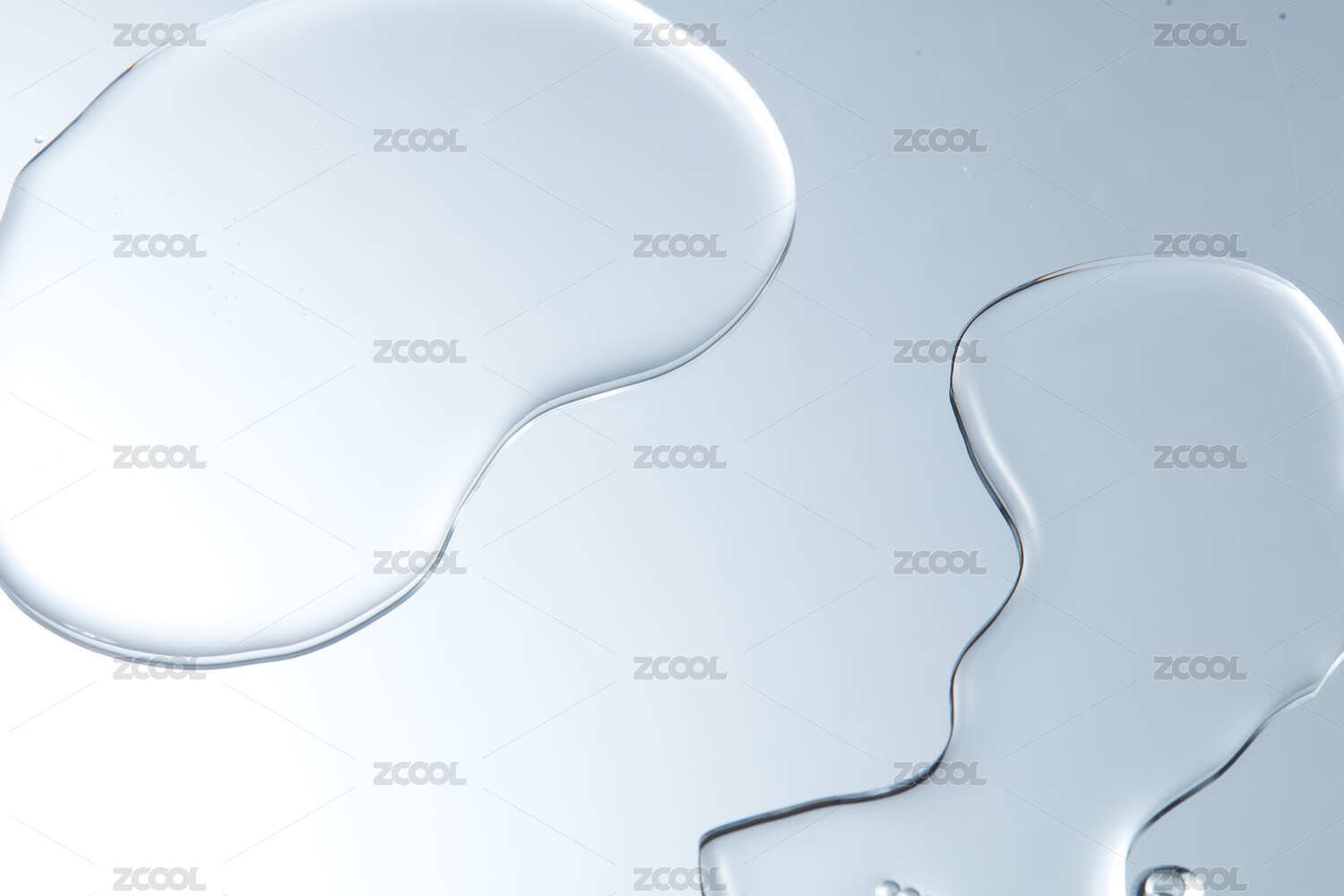 水珠在蓝色光感背景上