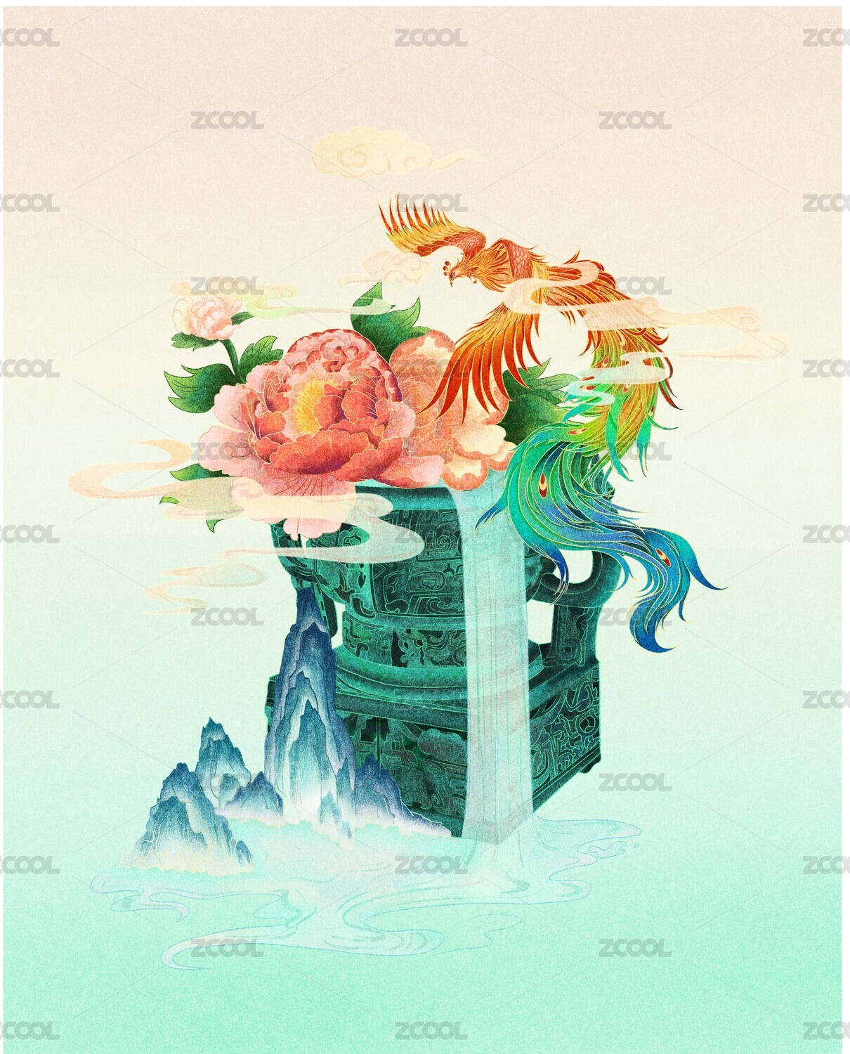 中国风国潮绿水青山风景小场景插图