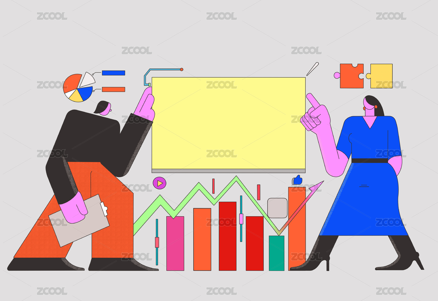 策划营销公司方案模式模板插画黑板商业股市