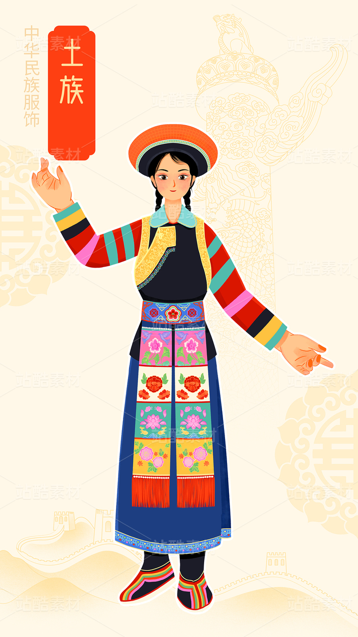 中国五十六个民族撒拉族少女盛装女性服饰插画