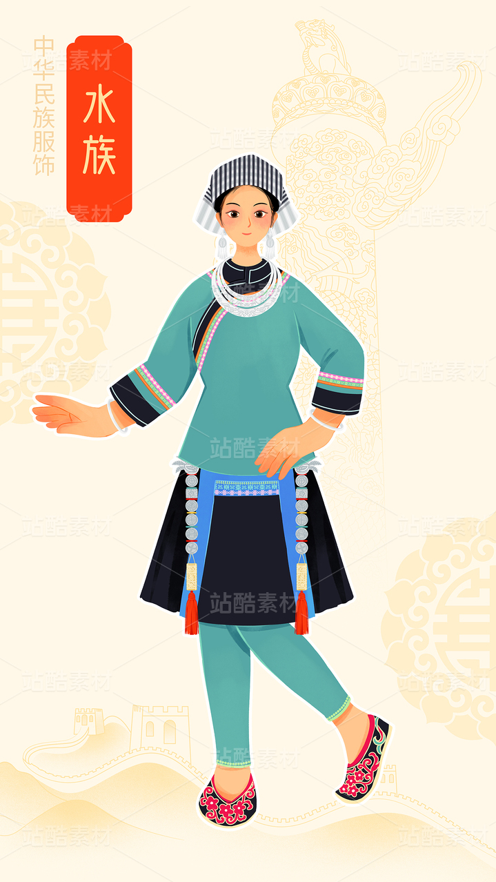 中国五十六个民族仫佬族少女盛装女性服饰插画