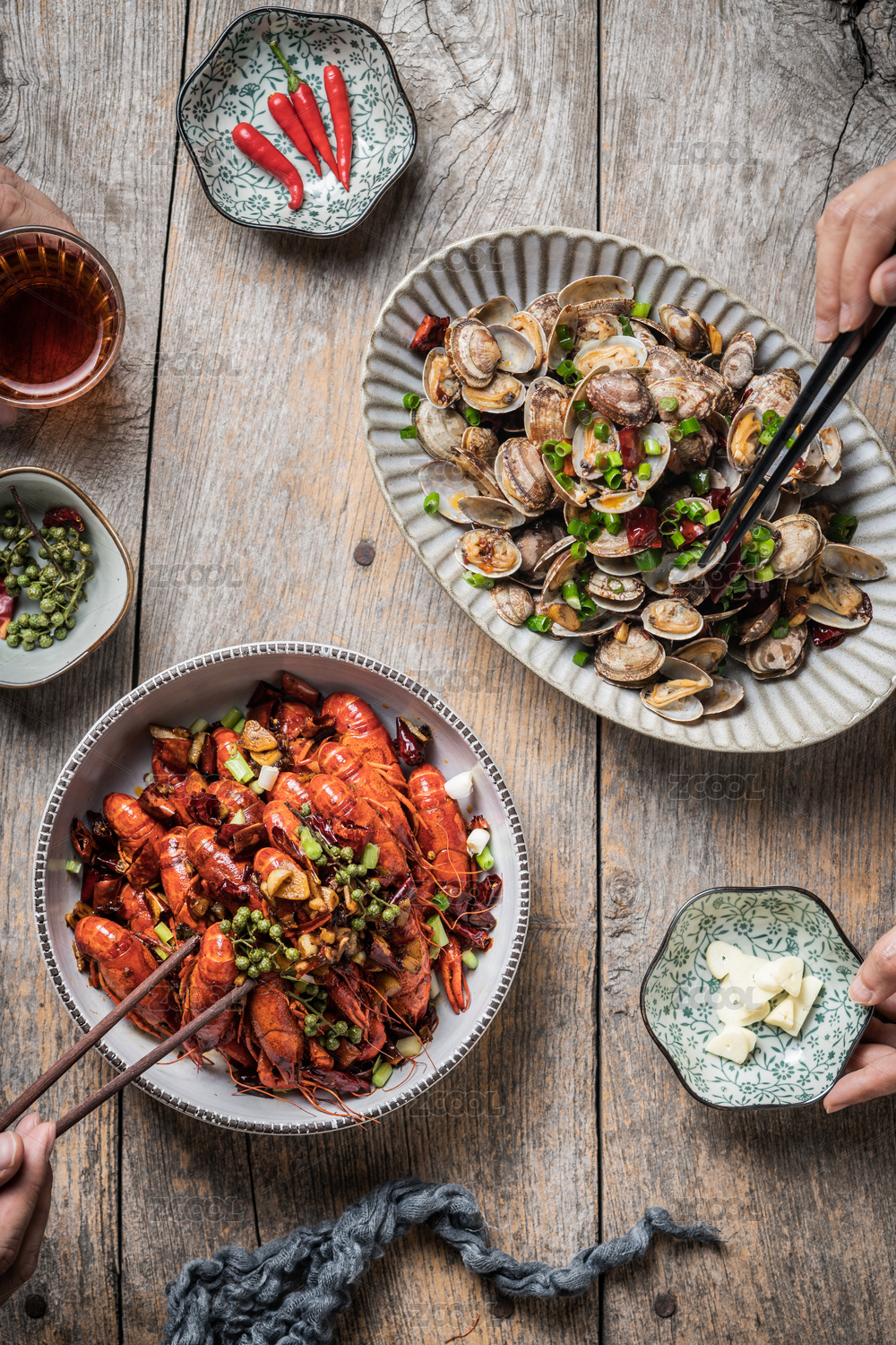 美味中国菜滕椒炒小龙虾及辣炒花甲