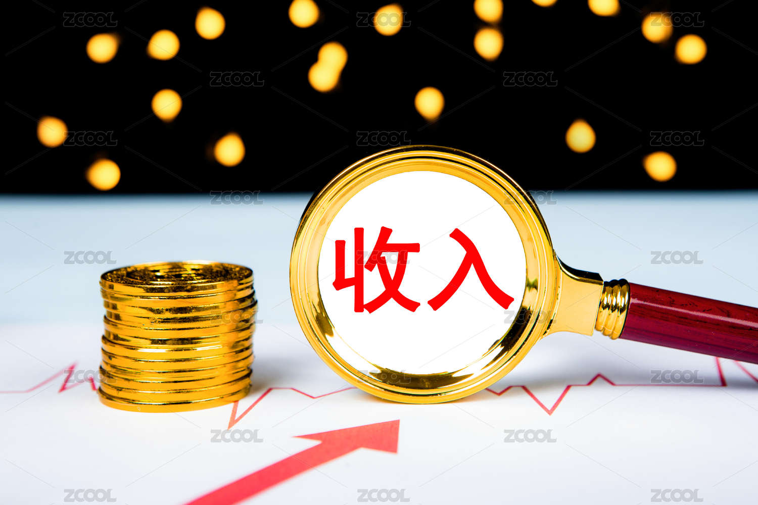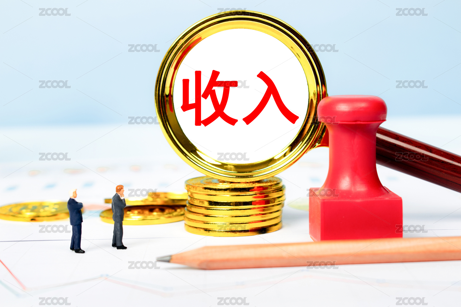 金融办公用品上放着文字积木收入