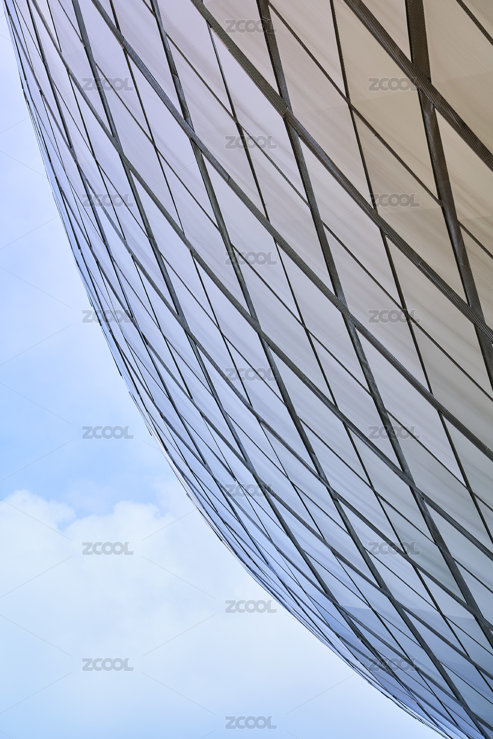 抽象现代几何曲线钢与铁现代建筑物墙面细节特写,建筑美学概念图