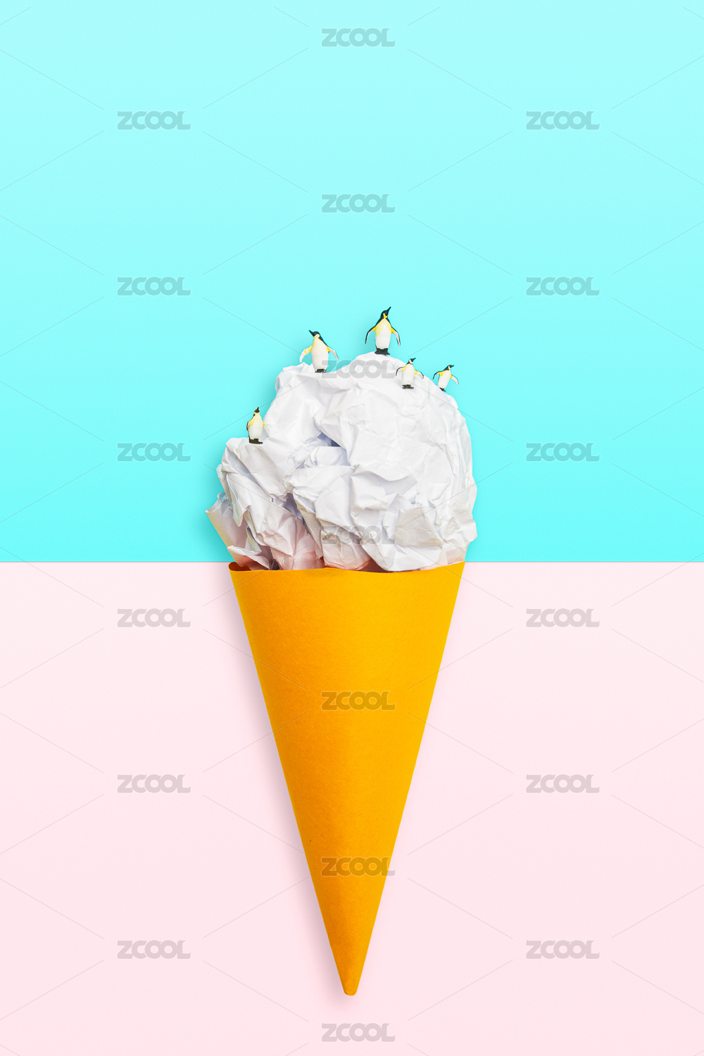 夏天甜筒蛋卷冰淇淋纸企鹅可爱拟物