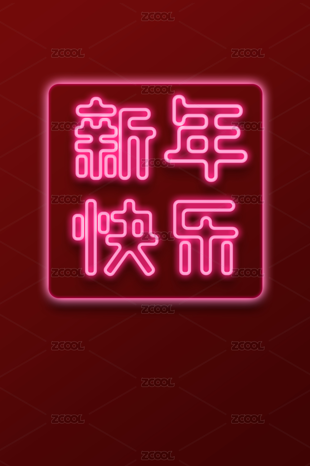 拟物霓虹灯样式新年快乐背景