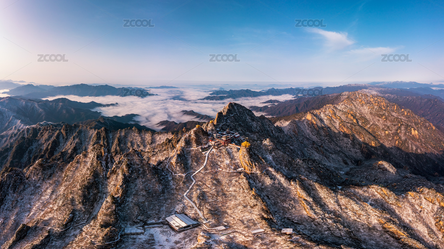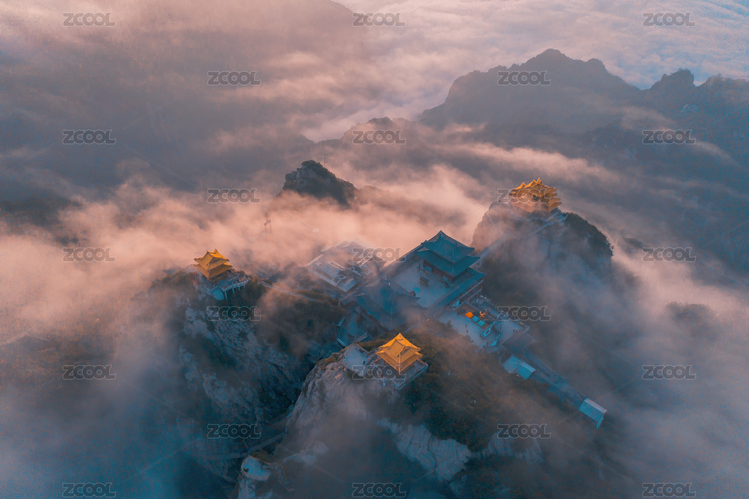 航拍河南洛阳老君山日出