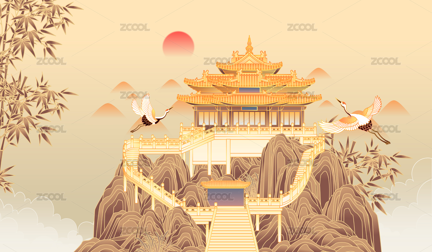河南洛阳老君山矢量插画