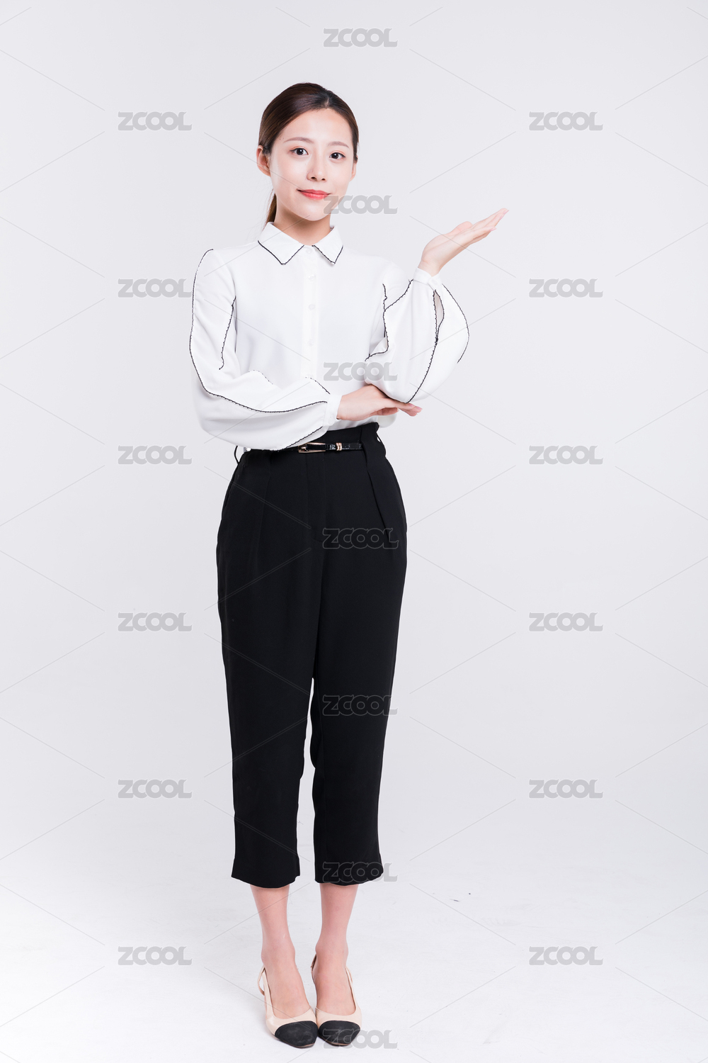 年轻青春女性站立伸手展示