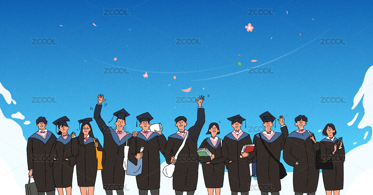手绘青春毕业季插画