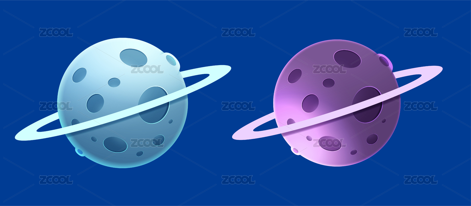 伪3D风格两颗星球矢量插画元素
